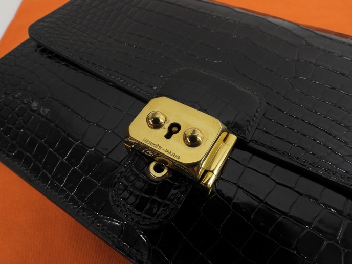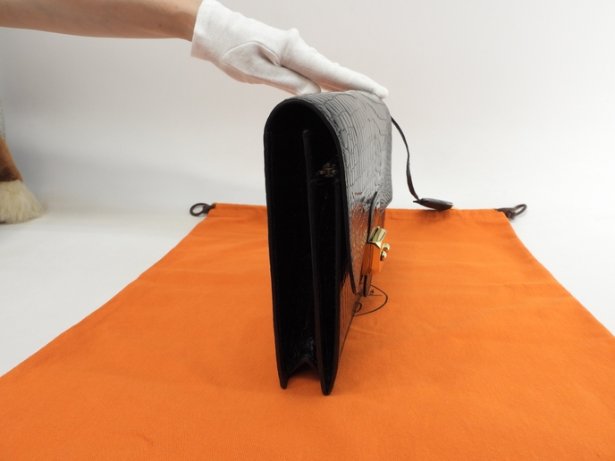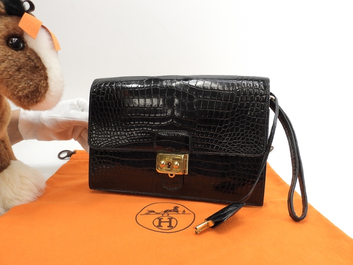 品名 : ジェット セカンドバッグ クラッチバッグ メンズポーチ メーカー: エルメス (HERMES) 型番・素材: クロコダイルレザー ライン・色: ノワール(ブラック) ゴールド金具 参考定価 : 不明 サイズ : W23.7 x H16.5 x D4 x G18.5 cm 製造番号 : ○K刻 付属品 : 写真の中に写っているものです 情報 : ボディはよく見ると薄スレ・薄汚れが少しこございますが、目立つダメージはなく綺麗です。底部角はスレはございません。グリップはスレ・汚れ・弱りもなく状態は良いです。バッグ内は薄スレが少しございますが、目立つダメージもなく綺麗なほうです。ファスナーの開閉は少しかためで、経年のくすみが全体的にございます。正面金具部分は薄スレ・小傷が少しあり、摘まみのトップにメッキ剥げが少しございます。 #Hermes #Jet #Secondbag #Crocodile #Porosus #Leather #Noir #BK #75%new #Kstamp #authentic #HandBag #ClutchBag #Bag #vintage #Mens #Gold #secondhand #wholeSale #haibanya #aisai-jp