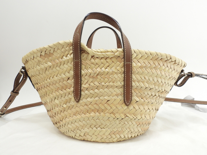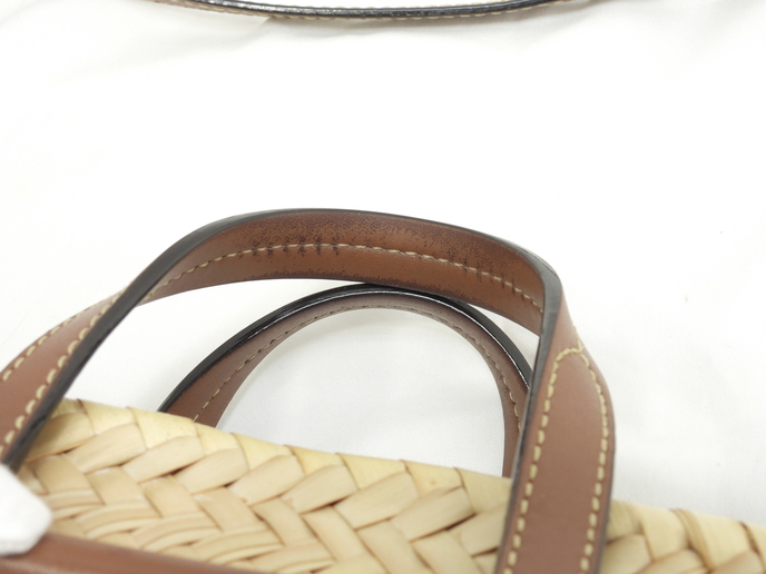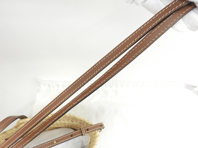 品名 : ハンドバッグ小 かごバッグ小 ショルダーストラップ付ミニトートバッグ ポシェット クロスボディバッグ メーカー : ジミーチュウ 型番・素材 : ヤシの葉/カーフレザー ライン・色 : ナチュラル/タン ゴールド金具 参考定価 : 不明 サイズ : W20(底)-37(上部) x H19 x D12.5 x G26 x L116-130 cm 製造番号 : TWWHPT 総重量 : 290g 本体重量 : 240g 付属品 : 写真の中に写っているものです 情報 : ボディはスレ・汚れもなく綺麗です。底部淵にスレはございません。ハンドルは薄スレ・色剥げが裏側にございますが、弱りもなく状態は良いです。ショルダーストラップは薄スレが少しございますが、弱りもなく状態は良いです。バッグ内はシミ・汚れもなく綺麗です。金具部分はメッキ剝げもなくピカピカです。 #JimmyChoo #Jimmy #Choo #MacyTote #Macy #Basket #Large #HandBag #ToteBag #Natural #Tan #70%new #authentic #Raffia #Calf #Gold #secondhand #wholeSale #haibanya #aisai-jp #転売可