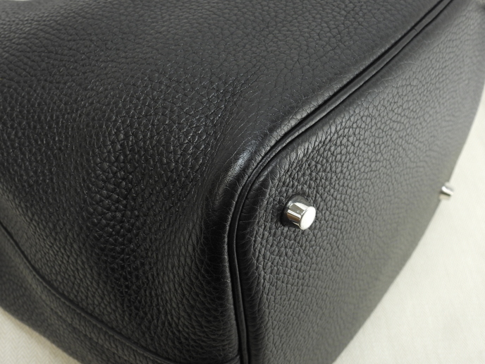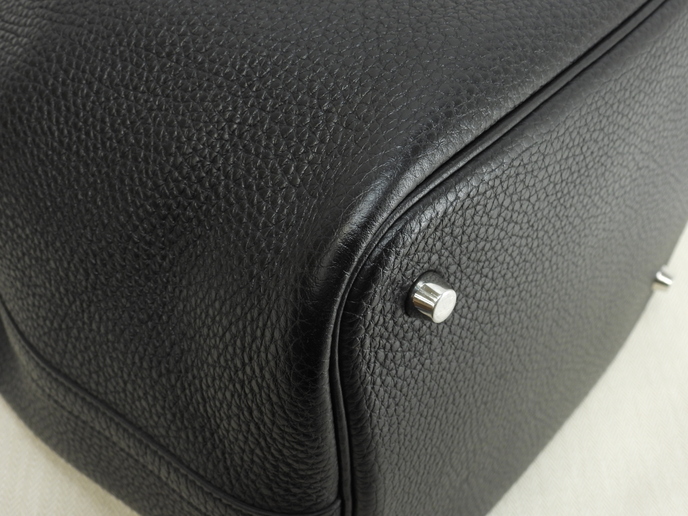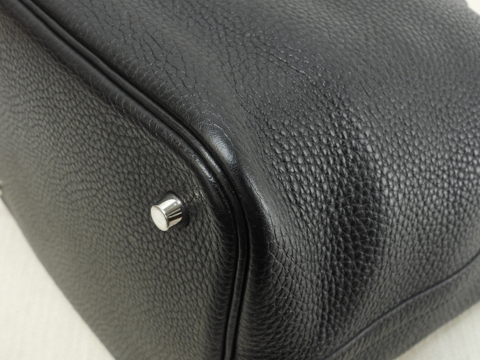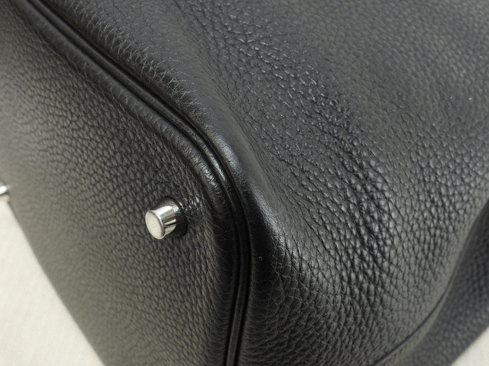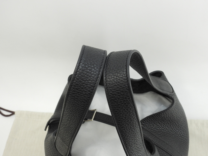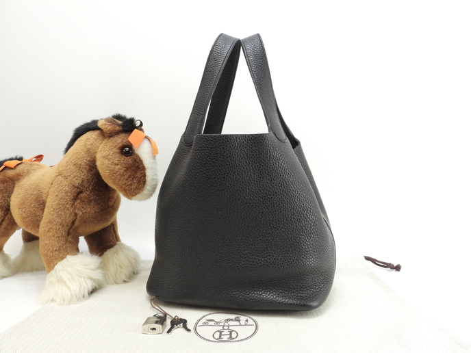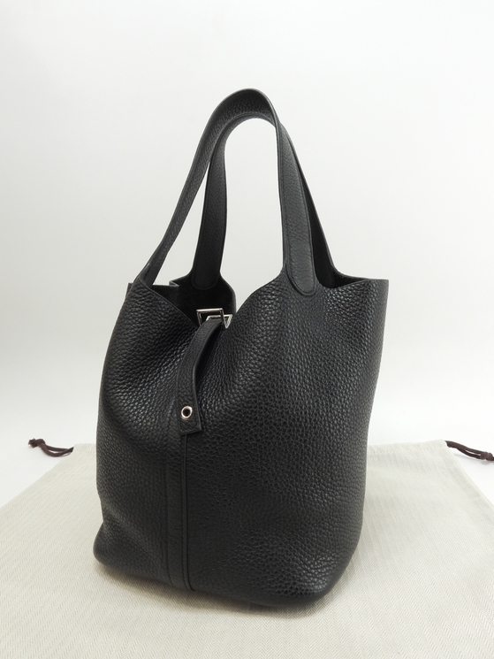 品名 : ピコタンロックMM (Picotin Lock 22) ピコタンロック22 ハンドバッグ トートバッグ トップハンドルバッグ メーカー : エルメス (HERMES) 型番・素材 : トリヨンクレマンスレザー ライン・色 : ノワール(ブラック) シルバー金具 参考定価 : 未確認 サイズ : W22 x H22 x D17.5 x G35 cm 製造番号 : Y刻総重量 : 790g 本体重量 : 610g 付属品 : 写真の中に写っているものです 情報 : ボディは柔らかいレザーで仕上げられておりますので型崩れ・くたっと感が少しございますが、スレ・汚れもなく綺麗です。底部角に気になるスレはございません。ハンドルはスレ・汚れ・弱りもなく状態は良いです。バッグ内はシミ・汚れもなく綺麗です。金具部分は薄スレ・小傷が少しございますが、メッキ剥げもなくピカピカです。 #Hermes #PicotinLockMM #TaurillionClemence #Taurillion #Clemence #BK #80%new #authentic #Picotin #PicotinLock #PicotinLock22 #HandBag #ToteBag #Silver #secondhand #wholeSale #haibanya #aisai-jp #転売可