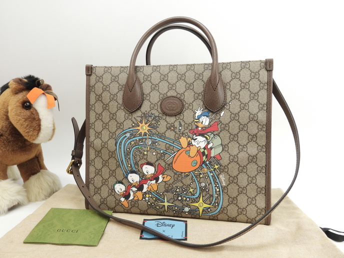 品名 : ショルダーストラップ付ハンドバッグ トートバッグ トップハンドルバッグ メーカー : グッチ (GUCCI) 型番・素材 : 648134 GGシュプリーム ライン・色 : ドナルドダック 限定ディズニーコラボレーション GGスプリーム グレー ヴィンテージゴールド金具 参考定価 : 不明 サイズ : W31.5 x H26 x D13.5 x G24 x L80-96 cm 製造番号 : 648134-520981総重量 : 990g 本体重量 : 900g 付属品 : 写真の中に写っているものです 情報 : ボディはスレ・汚れもなく綺麗です。底部角にスレはほとんどございません。ハンドルは気になるスレ・汚れ・弱りもなく状態は良いです。ショルダーストラップは気になるスレ・汚れ・弱りもなく状態は良いです。バッグ内は薄汚れが少しございますが、目立つダメージはございません。金具部分はメッキ剥げもなくピカピカです。 #Gucci #HandBag #ToteBag #BK #Courrier #Disney #Collaboration #DonaldDuck #donald #Duck #PVC #Leather #Brown #Glay #80%new #authentic #GG #Supreme #strap #ShoulderBag #Limited #648134 #Gold #secondhand #wholeSale #haibanya #aisai-jp #転売可