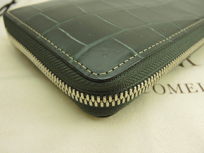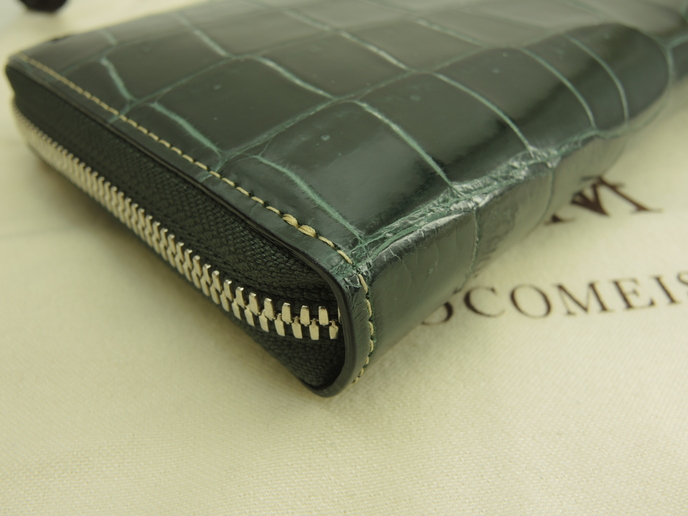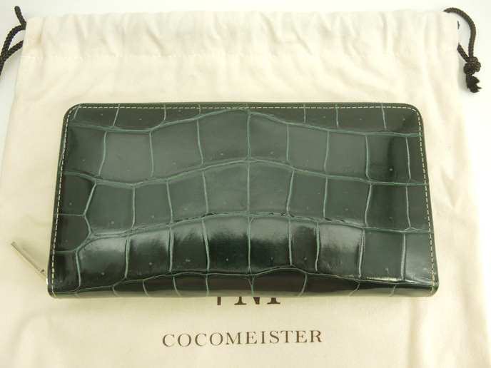 品名 : ラウンドジップ長財布 ジップアラウンドロングウォレット ジムクラック メーカー : ココマイスター 型番・素材 : クロコダイルレザー ライン・色 : ダークグリーン シルバー金具 参考定価 : 672000円 サイズ : W21 x H11 x D2.5 cm 製造番号 : 元から無し 総重量 : 1010g 本体重量 : 300g 付属品 : 写真の中に写っているものです 情報 : ボディは使用による薄スレ・クスミが全体的に少しございますが、目立つダメージなく綺麗です。コーナー淵にスレはございません。財布内は気になるスレ・汚れもなく綺麗です。コインケース内は銭汚れが少しございます。ファスナーの開閉は少しかためです。金具部分はメッキ剥げもなくピカピカです。 #Cocomeister #LongWallet #GIMCRACK #Wallet #Crocodile #Leather #Green #80%new #authentic #LongWallet #ZipAroundWallet #Silver #secondhand #wholeSale #haibanya #aisai-jp #転売可