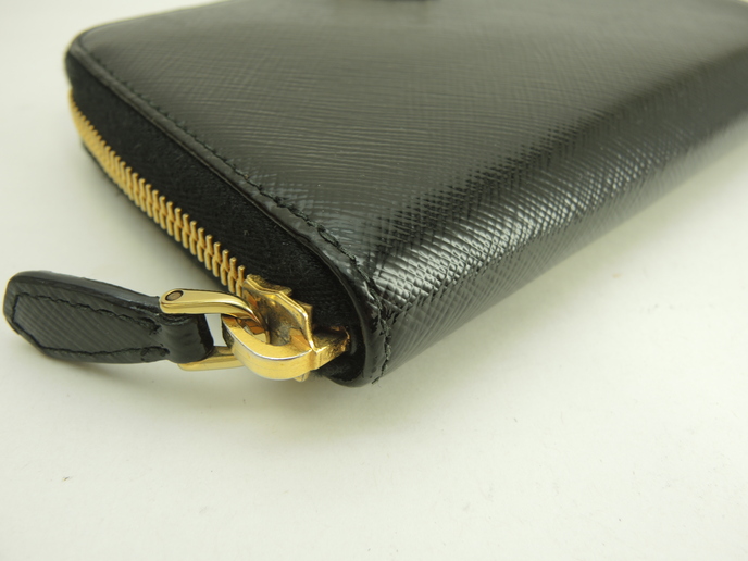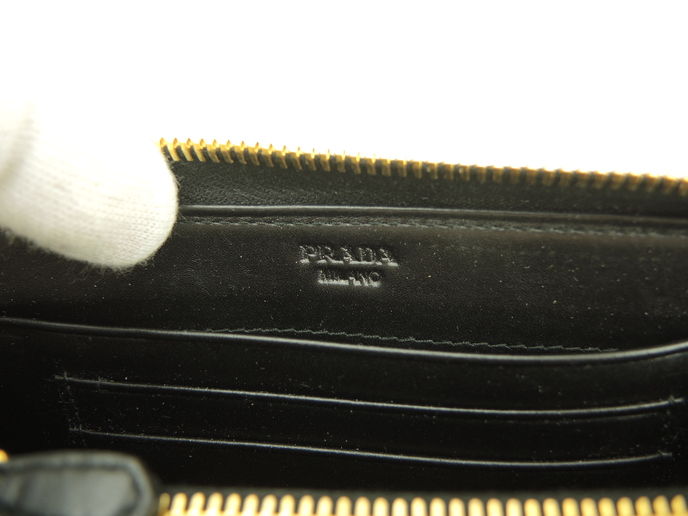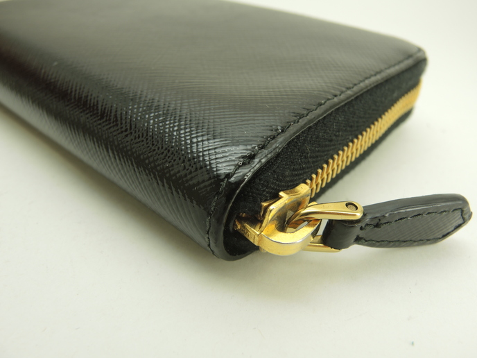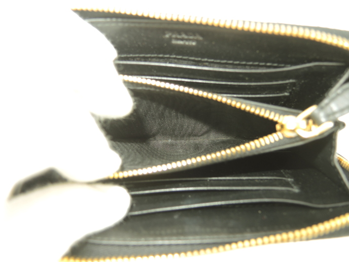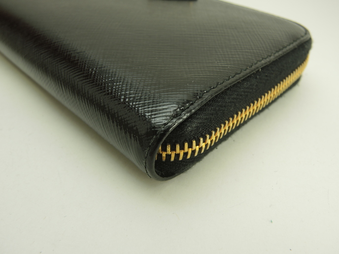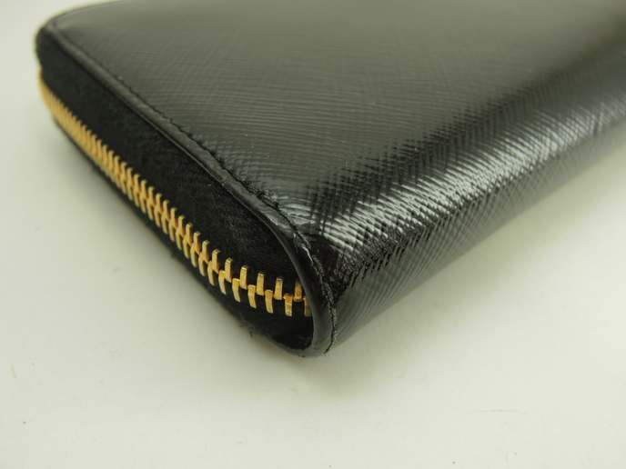 品名 : コンパクト財布 コンパクトウォレット 2つ折りジップ財布 ジップアラウンドウォレット メーカー : プラダ (PRADA) 型番・素材 : パテントレザー ライン・色 : 三角プレートロゴ ブラック(ノワール) ゴールド金具 参考定価 : 不明 サイズ : W15.5 x H8.5 x D2.5 cm 製造番号 : 224 総重量 : 150g 本体重量 : 160g 付属品 : 写真の中に写っているものです 情報 : ボディは薄スレ・薄汚れが少しございますが、目立つダメージもなく綺麗です。角・湾曲部にスレはございません。財布内は薄汚れ・埃・シール痕がございます。コインケース内は銭汚れが少しございます。ファスナーの開閉はスムースです。金具部分はスライサーにメッキ剥げが少しございますが、全体的に綺麗です。 #Prada #CompactWallet #SmallWallet #Wallet #Patent #Enamel #Leather #BK #Nero #70%new #authentic #Triangle #Logo #Gold #secondhand #wholeSale #haibanya #aisai-jp #転売可