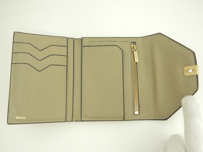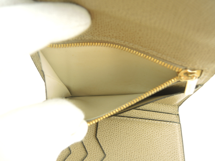 品名 :イジィデ ウォレット 3折り財布 スモールウォレット メーカー : ヴァレクストラ 型番・素材 : 型押しカーフレザー ライン・色 : オイスターグレー ライトゴールド金具 参考定価 : 149600円 サイズ : W12.5 x H10 x D2 cm 製造番号 : S R 0V 総重量 : 137g 本体重量 : 137g 付属品 : 写真の中に写っているものです 情報 : ボディは若干薄スレがございますが、汚れもなく綺麗です。コーナー・淵に薄スレが少しございます。財布内は若干薄スレがございますが、目立つダメージもなく綺麗です。札入れ内は薄汚れがございます。コインケース内は銭汚れが少しございます。ファスナーの開閉は少しかためです。金具部分は薄スレ・小傷が少しございますが、メッキ剥げはございません。 #Valextra #Iside #Wallet ##Leather #OysterGray #75%new #authentic #SmallWallet #TriFold #Gold #secondhand #wholeSale #haibanya #aisai-jp #転売可