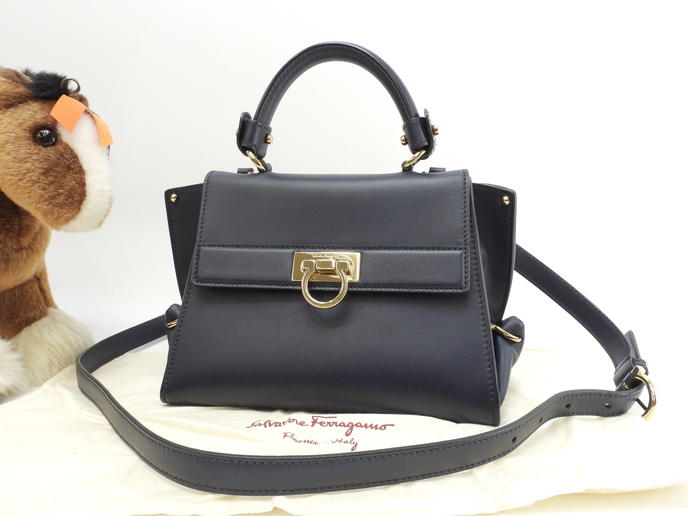品名 : ショルダーストラップ付きハンドバッグ 斜め掛けショルダーバッグショルダーバッグ ポシェット クロスボディバッグ トップハンドルバッグ ミニハンドバッグ メーカー : サルヴァトーレ フェラガモ 型番・素材 : スムースカーフレザー ライン・色 : ガンチーニ ネイビー ゴールド金具 参考定価 : 不明 サイズ : W29 x H17 x D13 x G23 x L106-118 cm 製造番号 : FZ-21 D570総重量 : 810g 本体重量 : 760g 付属品 : 写真の中に写っているものです 情報 : ボディは使用による薄スレが全体的にちょこちょこございますが、目立つダメージはなく綺麗なほうです。角にスレはございません。ハンドルは気になるスレ・汚れ・弱りもなく状態は良いです。ショルダーストラップはスレ・汚れ・弱りもなく状態は良いです。バッグ内は使用による薄スレ・小傷が全体的にございますが、汚れはございません。金具部分は薄スレが少しございますが、メッキ剥げもなくピカピカです。 #SalvatoreFerragamo #Salvatore #Ferragamo #HandBag #ToteBag #CrossbodyBag #Bag #Pochette #ShoulderBag #Leather #Navy #75%new #authentic #Gancini #Gold #secondhand #wholeSale #haibanya #aisai-jp #転売可