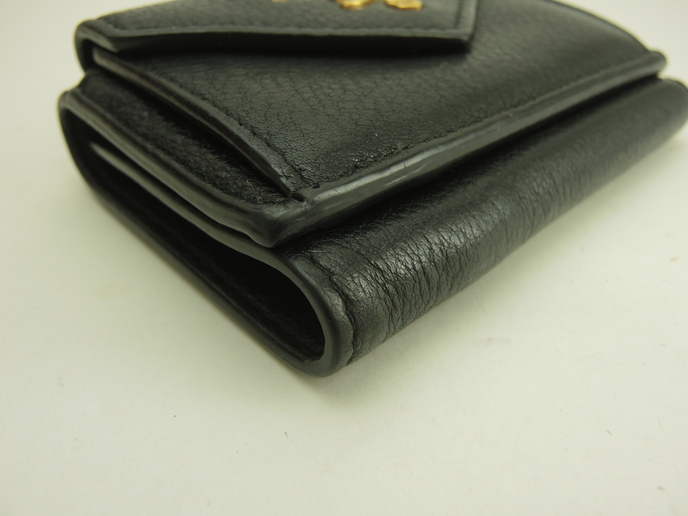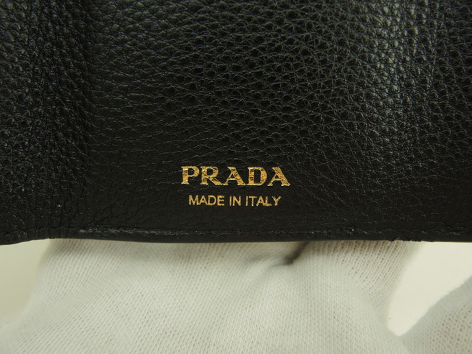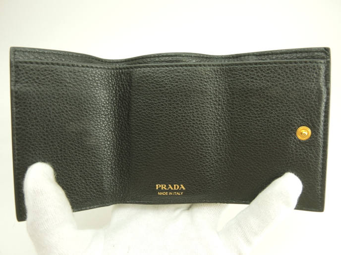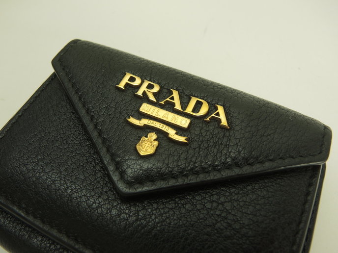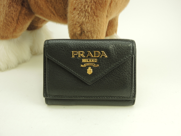 品名 : スモール財布 コンパクトウォレット 3つ折り財布 ミニウォレット メーカー : プラダ (PRADA) 型番・素材 : 型押しカーフレザー(トゴレザー) ライン・色 : 立体ロゴ ブラック ゴールド金具 参考定価 : 約10万円 サイズ : W10 x H7.5 x D3.5 cm 製造番号 : 181E 総重量 : 86g 本体重量 : 86g 付属品 : 写真の中に写っているものです 情報 : ボディは型崩れ・薄スレが少しございますが、目立つダメージ・汚れもなく綺麗なほうです。角・湾曲部にスレはございません。財布内はスレ・汚れもなく綺麗です。札入れ内は薄汚れが少しございますが、目立つダメージもなく綺麗です。小銭入れ内はスレ・銭汚れが少しある程度で綺麗です。ホックボタンは弱りもなくシッカリと閉まります。正面のロゴ金具はメッキ剝げもなくピカピカです。 #Prada #MiniWallet #SmallWallet #Wallet #Embossed #Leather #BK #Nero #70%new #authentic #Solid #Logo #Gold #secondhand #wholeSale #haibanya #aisai-jp #転売可