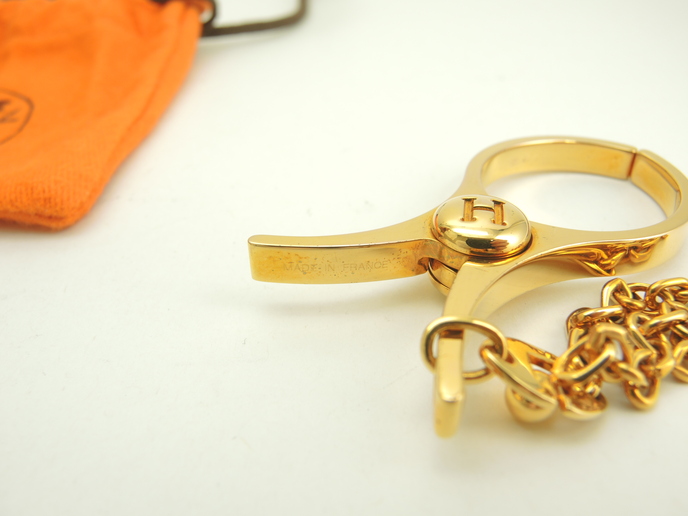 品名 : バッグチャーム キーリング グローブフォルダー メーカー : エルメス (HERMES) 型番・素材 : メッキ ライン・色 : フィルー シャインイエローゴールド(つるつるピカピカのタイプ) 参考定価 : 未確認 サイズ : W6 x H2.8 x D1 x L7 cm 製造番号 : 元からなし総重量 : 35g 本体重量 : 26g 付属品 : 写真の中に写っているものです 情報 : ・エルメスのハサミ型キーリングです。 ・全体がメタル素材にメッキで仕上げられております。 ・開閉はバネ式です。 ・キーホルダーやバッグチャームなどのアクセサリーとしてお使いいただけます。 状態コメント : ボディは特記すべきスレ・小傷もなく綺麗です。チェーン部分も特記すべきダメージ・壊れはございません。メッキはげもなく全体的に綺麗です。 #Hermes #BagCharm #GloveHolder #Scissors #FILOU #Key #Shine #Gold #90%new #authentic #Kelly #Barkin #Charm #Accessories #secondhand #wholeSale #haibanya #aisai-jp #転売可