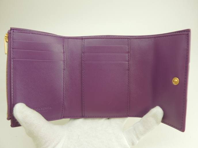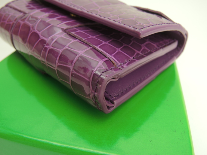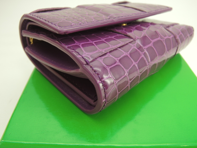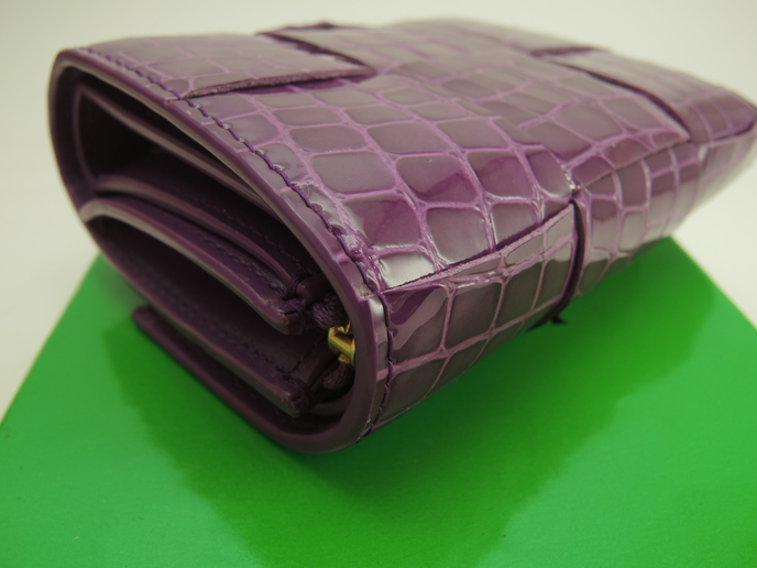 品名 : 3折り財布 スモールウォレット コンパクトウォレット メーカー : ボッテガヴェネタ (BOTTEGA VENETA) 型番・素材 : シャインクロコダイルレザー ライン・色 : パープル マットゴールド金具 参考定価 : 不明 サイズ : W11.7 x H9 x D4.5 cm 製造番号 :P02710410A ICも反応有 総重量 : 352g 本体重量 : 139g 付属品 : 写真に写っているものです 情報 : ボディはスレ・汚れもなく綺麗です。角・湾曲部にスレはございません。財布内はスレ・汚れもなく綺麗です。札入れ内は気になるスレ・汚れもなく綺麗です。コインケース内は銭汚れもほとんどなく綺麗です。ファスナーの開閉はスムースです。ホックボタンは弱りもなくシッカリと閉まります。金具部分はメッキ剥げもなく綺麗です。 #BOTTEGAVENETA #Bottega #Veneta #CompactWallet #SmallWallet #Wallet #Shine #Crocodile #Cassette #Purple #90%new #authentic #Tri-Hold #Gold #secondhand #wholeSale #haibanya #aisai-jp #転売可