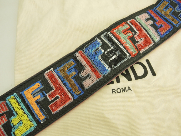 品名 : ロングショルダーストラップ ポシェット・クロスボディバッグになる メーカー : フェンディ (FENDI) 型番・素材 : カーフレザー ライン・色 : FFモチーフ ブラック/マルチカラー シルバー金具 参考定価 : 不明 サイズ : W5.2 x D0.3 x L90 cm 製造番号 : 元から無し総重量 : 184g 本体重量 : 146g 付属品 : 写真の中に写っているものです 情報 : ボディは曲がり癖が少しございますが、スレ・汚れもなく綺麗です。スパンコールにとれはございません。Dリング金具はメッキ剥げ・弱りはございません。 #Fendi #ShoulderStrap #sequins #Leather #Black #multicoloer #80%new #authentic #FF #motif #Long #Strap #Silver #secondhand #wholeSale #haibanya #aisai-jp #転売可