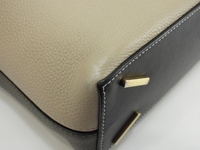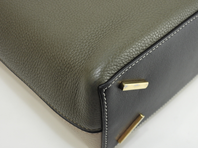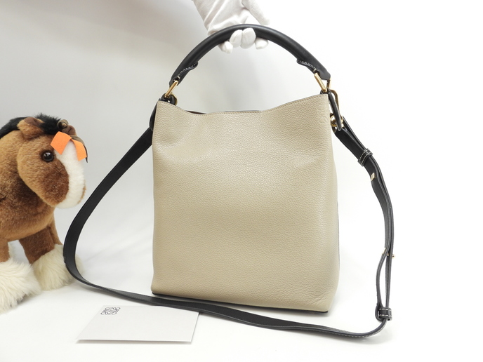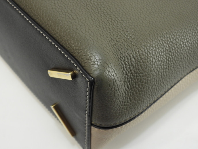 品名 : 2wayハンドバッグ ショルダーストラップ付トートバッグ クロスボディバッグ ポシェット 斜め掛けショルダーバッグ メーカー : ロエベ (LOEWE) 型番・素材 : ソフトグレインドカーフレザー ライン・色 : Tバケットスモール サンド/ブラック/モスグリーン ゴールド金具 参考定価 : 不明 サイズ : W23 x H26.5 x D9.5 x G30 x L105-125 cm 製造番号 : 261821総重量 : 740g 本体重量 : 740g 付属品 : 写真の中に写っているものです 情報 : ボディは若干しわがございますが、目立つダメージはございません。底部角に薄スレ・薄汚れが少しございます。ハンドルは薄スレ・薄汚れが少しございますが、弱りはございません。ショルダーストラップはレザーに薄スレが少しあり、金具同士が擦れる部分に削れがございます。バッグ内は気になるシミ・汚れもなく綺麗です。金具部分は薄スレ・小傷が全体的にございますが、メッキは綺麗なほうです。 #Loewe #HandBag #Bag #ShoulderBag #Tbucket #Small #Gray #BK #Green #70%new #authentic #CrossbodyBag #Pochette #Gold #secondhand #wholeSale #haibanya #aisai-jp #転売可