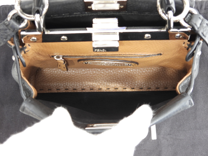 品名 : ミニピーカブー ピーカプーアイコニックミニ ショルダーストラップ付ハンドバッグ ポシェット クロスボディバッグ 斜め掛けショルダーバッグ メーカー : フェンディ (FENDI) 型番・素材 : 8BN244_Q0J クオイオ ローマセレリアカーフレザー ライン・色 : ピーカブー ブラック シルバー金具 参考定価 : 709500円 サイズ : W17.523.5 x H18 x D11.5 x G24 x L106-138 cm 製造番号 : 8BN244-Q0J-219-0501総重量 : 740g 本体重量 : 650g 付属品 : 写真の中に写っているものです 情報 : ボディはスレ・汚れもなく綺麗です。底部角にスレはございません。ハンドルはスレ・汚れ・弱りはございません。ショルダーストラップはスレ・汚れ・弱りもなく状態は良いです。バッグ内は気になるシミ・汚れもなく綺麗です。金具部分はスレ・小傷もほとんどなく、メッキ剥げもなくピカピカです。 #Fendi #Peekaboo #MiniPeekaboo #ICONIC #Mini #BK #Selleria #Roman #Leather #90%new #authentic #HandBag #CrossbodyBag #Pochette #ShoulderBag #Strap #Bag #8BN244 #Silver #secondhand #wholeSale #haibanya #aisai-jp #転売可