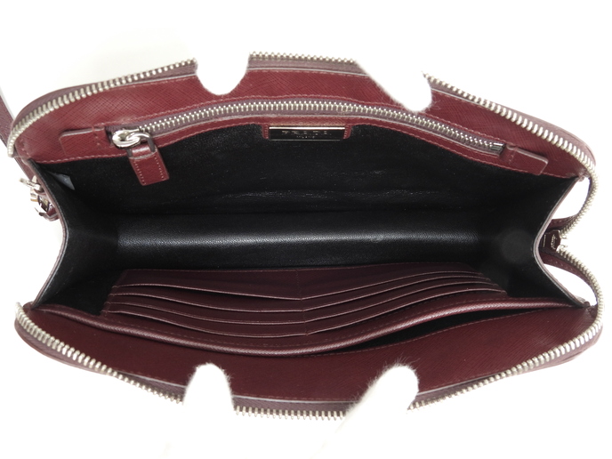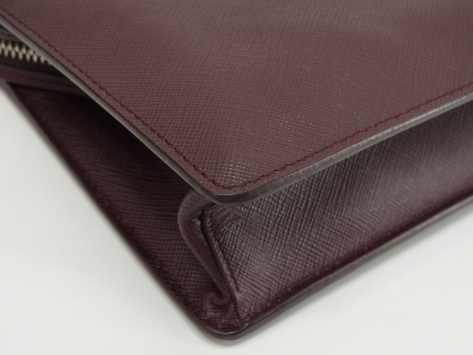 品名 : クラッチウォレットバッグ セカンドバッグ メンズ ポーチ メーカー : プラダ (PRADA) 型番・素材 : サフィアーノレザー ライン・色 : ポータープレート ボルドー シルバー金具 参考定価 : 不明 サイズ : W26 x H17 x D5 x 20 cm 製造番号 : 7/R、164 総重量 : 450g 本体重量 : 450g 付属品 : 写真の中に写っているものです 情報 : ボディは型崩れ・薄スレが全体的にございますが、酷いダメージはございません。底部角にスレはございません。グリップは曲がり癖がございますが、スレ・汚れ・弱りもなく状態は良いです。手を通すベルトにスレ・汚れ・弱りはございません。バッグ内は薄スレ・薄汚れが少しございますが、目立つダメージもな綺麗です。ファスナーポケット内はシワがございますが汚れもなく綺麗です。ファスナーの開閉は少しかためです。ファスナーの引手レザーは気になるスレ・汚れ・弱りはございません。金具部分はクスミが少しございますが、メッキ剥げはございません。 #Prada #LongWallet #Wallet #ZipAroundWallet #Saffiano #Triang #Bordeaux #70%new #authentic #Porter #Plate #RaundZip #Wallet #ClutchWallet #Porch #Bag #Clutch #SecondBag #Silver #secondhand #wholeSale #haibanya #aisai-jp #転売可
