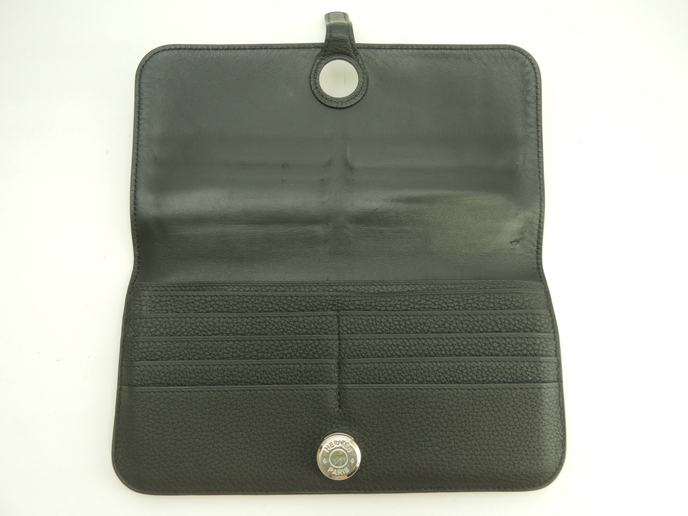 品名 : ドゴンロング カード用ポケット付長財布 ロングウォレット メーカー : エルメス (HERMES) 型番・素材 : トリヨンクレマンス ライン・色 : ノワール シルバー金具 参考定価 : 未確認 サイズ : W20.5 x H11 x D2 cm 製造番号 : D刻総重量 : 271g 本体重量 : 157g 付属品 : 写真の中に写っているものです 情報 : ボディは型崩れ・シワ・押し痕・薄スレが全体的に少しございますが、目立つダメージはなく綺麗なほうです。角・湾曲部淵に気になるスレはございません。蓋ベルトにしわ・薄スレが少しございますが弱りはございません。財布内は蓋裏にカードホルダーの痕・薄スレが少しございますが、特記すべきダメージはございません。小銭入れ内は銭汚れが全体的にけっこうございます。正面金具は小傷・薄スレが全体的にございますが、メッキはげはございません。 #Hermes #DesGondsLong #DesGonds #Des #Gonds #Dogon #TaurillonClemence #Taurillon #Clemence #Nior #Black #70%new #authentic #LongWallet #Wallet #Silver #secondhand #wholeSale #haibanya #aisai-jp #転売可