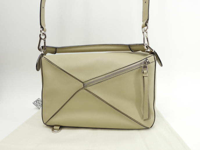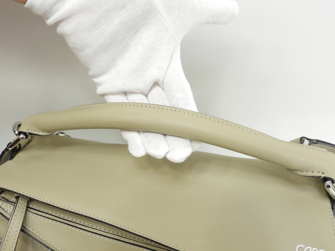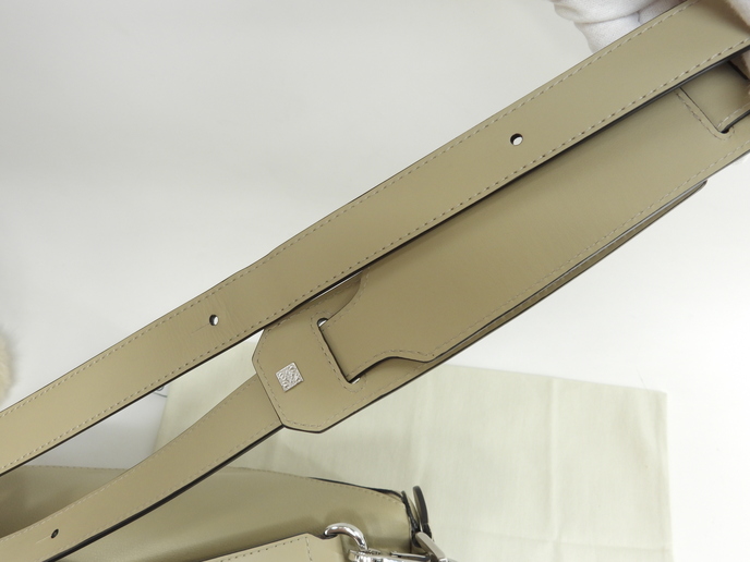 品名 : ショルダーストラップ付ハンドバッグ 斜め掛けショルダーバッグ ポシェット クロスボディバッグ メーカー : ロエベ (LOEWE) 型番・素材 : 322.30.S20 クラシックカーフレザー ライン・色 : パズル ミディアム グレージュ シルバー金具 参考定価 : 577500円 サイズ : W29 x H18 x D12 x G30 x L82-120 cm 製造番号 : タグ切れのため無し総重量 : 940g 本体重量 : 810g 付属品 : 写真の中に写っているものです 情報 : ボディは型崩れ・薄スレ・薄汚れが少しございますが、目立つダメージもなく綺麗です。底部角は擦れもほとんどなく綺麗です。ハンドルはスレ・汚れ・弱りもなく状態は良いです。ショルダーストラップは未使用で綺麗です。バッグ内は薄汚れが少しございますが、目立つダメージはございません。製造番号の革タグが切れてなくなっております。ファスナーの開閉はスムースです。金具部分はメッキ剝げもなくピカピカです。 #Loewe #HandBag #PuzzleBag #Puzzle #Bag #Medium #Marin #Greige #LightGray #80%new #authentic #ShoulderBag #CrossBodyBag #CrossBody #Pochette #Silver #secondhand #wholeSale #haibanya #aisai-jp #転売可