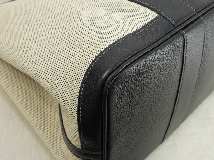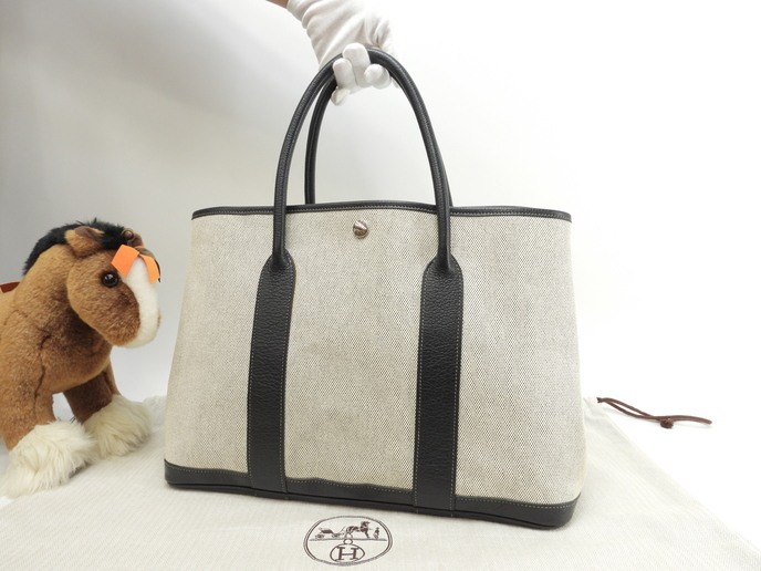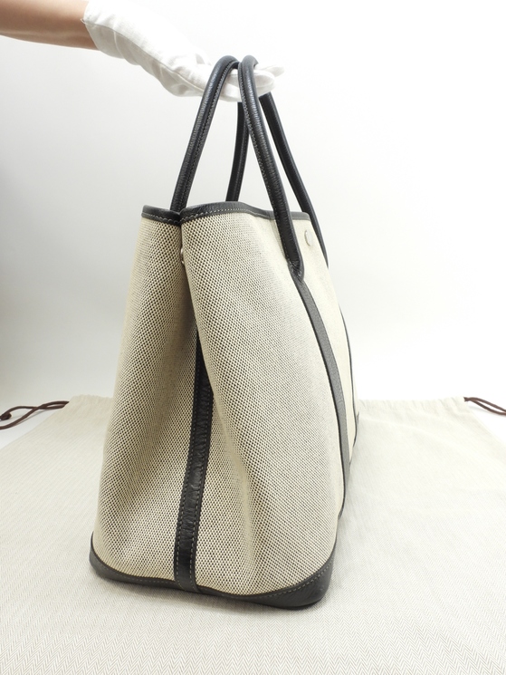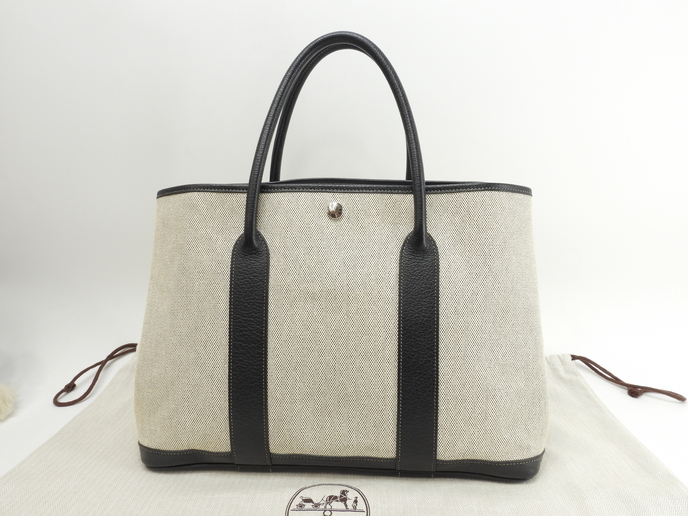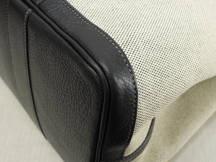 品名 : ガーデンパーティーPM (Garden Party PM) トートバッグ ハンドバッグ メーカー : エルメス (HERMES) 型番・素材 : コーティング無しトアルアッシュPM/ブッフルスキッパーレザー ライン・色 : グレー/ブラック シルバー金具 参考定価 : 未確認 サイズ : W36.5 x H26 x D17.5 x G40 cm 製造番号 : □J刻総重量 : 770g 本体重量 : 550g 付属品 : 写真の中に写っているものです 情報 : ボディは経年の黄ばみが全体的に薄くあり、レザー脇に製造過程のボンドのはみ出しが少しございますが、汚れもなく綺麗なほうです。底部角に薄スレ・薄汚れが少しございます。ハンドルはスレ・汚れ・弱りもなく状態は良いです。バッグ内はシミ・汚れもなく綺麗です。金具部分は薄スレ・小傷が少しございますが、メッキ剥げもなくピカピカです。 #Hermes #GardenParty #GardenPartyPM #Cotton #Campass #Gray #BK #70%new #authentic #HandBag #ToteBag #Silver #secondhand #wholeSale #haibanya #aisai-jp #転売可