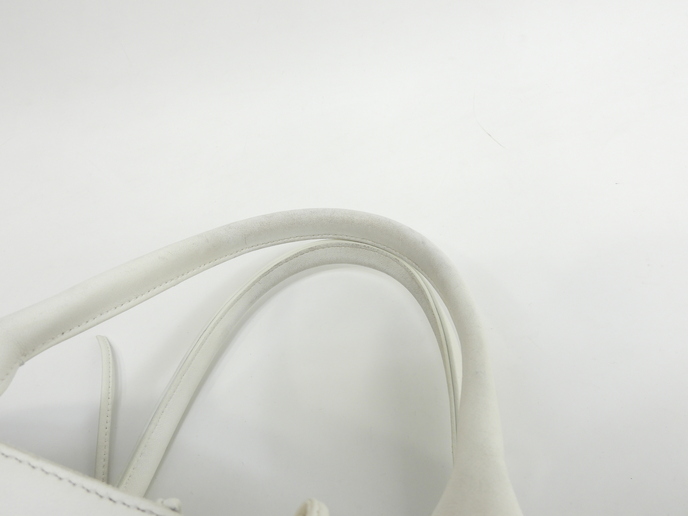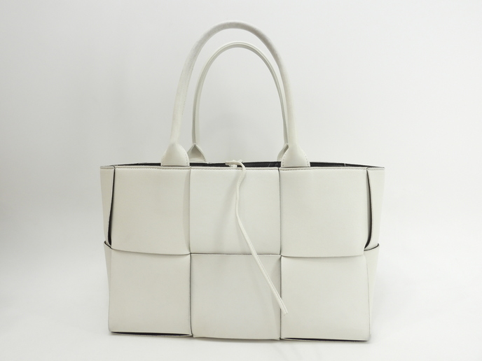 品名 : トートバッグ中 ハンドバッグ トップハンドルバッグ メーカー : ボッテガヴェネタ (BOTTEGA VENETA) 型番・素材 : スムースカーフスキンレザー ライン・色 : スモールアルコ ホワイト マットシルバー金具 参考定価 : 462000円 サイズ : W30.5 x H20 x D11.5 x G36 cm 製造番号 : B09832137G 総重量 : 630g 本体重量 : 630g 付属品 : 写真の中に写っているものです 情報 : ボディは使用による薄スレ・薄汚れが全体的にちょこちょこございますが、酷いダメージはございません。底部角付近に薄スレ・薄汚れが少しございます。ハンドルは薄スレ・薄汚れ・色剥げが全体的にございますが、弱りはございません。バッグ内は薄スレが全体的に少しございますが、目立つダメージもなく綺麗なほうです。金具部分はメッキ剝げもなく綺麗です。取り外し可能なポーチは薄スレが全体的にあり、薄汚れも少しございます。 #BOTTEGAVENETA #Bottega #Veneta #ToteBag #HandBag #Bag #CalfSkin #Leather #White #55%new #authentic #Arco #Small #Silver #secondhand #wholeSale #haibanya #aisai-jp #転売可