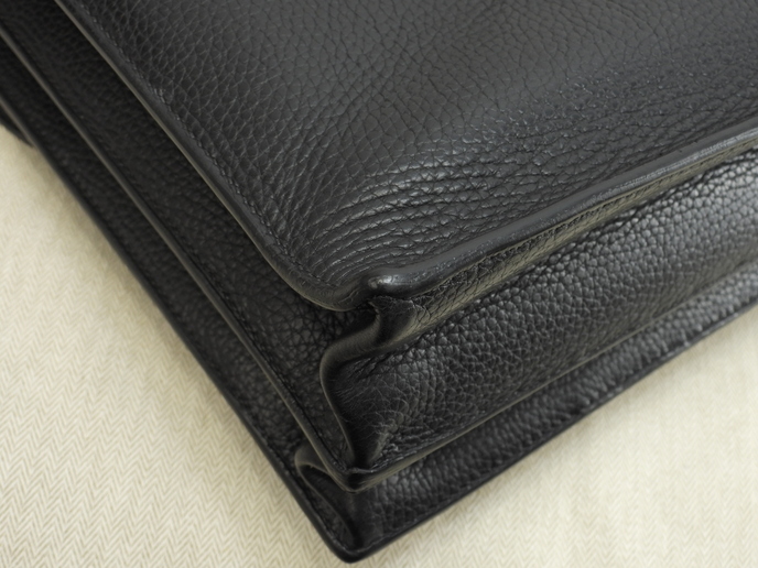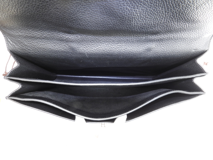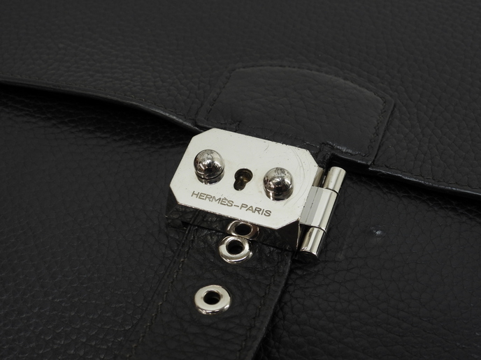 品名 : サックアデペッシュ38 (Sac a Depeches 38) 書類かばん ブリーフケース ドキュメントケース ビジネスバック 書類カバン メーカー : エルメス (HERMES) 型番・素材 : フィヨルドレザー ライン・色 : ノワール(ブラック) シルバー金具 参考定価 : 約104万円 サイズ : W38.5 x H28 x D12 x G15 cm 製造番号 : □I刻 総重量 : 2040g 本体重量 : 1820g 付属品 : 写真の中に写っているものです 情報 : ボディは型崩れが少しございますが、気になるスレ・汚れはございません。底部角・バッグ淵に気になるスレはございません。ハンドルは薄スレ・薄汚れ・シワが全体的に少しございますが、弱りはございません。バッグ内は薄スレが少しございますが、気になる汚れはございません。金具部分薄スレ・小傷が全体的にあり、淵にメッキ剥げも少しございます。 #Hermes #SacaDepeches #SacaDepeches38 #Sac #Depeches #Fjord #Lether #BK #80%new #authentic #HandBag #BusinessBag #DocumentCase #Bag #Briefcase #Silver #secondhand #wholeSale #haibanya #aisai-jp #転売可