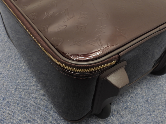 品名 : ペガス45 (Pegase 45) キャリーバッグ 旅行用スーツケース トロリーバッグ メーカー : ルイヴィトン (LOUIS VUITTON) 型番・素材 : M91277 ライン・色 : ヴェルニ/アマラント ゴールド金具 参考定価 : 約40万円 サイズ : W35 x H45 x D18.5 x G20 x GL105 cm 製造番号 : MB0068 総重量 : 3720g 本体重量 : 3460g 付属品 : 写真の中に写っているものです 情報 : ボディは若干薄汚れ・薄スレがございますが、目立つダメージはなく綺麗です。底部角に気になるスレはございません。ハンドルは雨ジミ・薄汚れ・薄スレが少しございますが、弱りもなく状態は良いです。収納可能なキャリーグリップは薄スレ・薄汚れ・色剥げが少しございますが、弱りもなく状態は良いです。ローラーは直営店で新品に交換済みで綺麗です。バッグ内は若干薄汚れがございますが、目立つダメージもなく綺麗です。ファスナーの開閉はスムースです。金具部分は薄スレ・小傷・クスミ・メッキ剥げが少しございますが、全体的に綺麗です。 #LouisVuitton #Louis #Vuitton #TravelBag #Vernis #Amaranto #80%new #authentic #M91277 #Pegase45 #Pegase #CarryBag #Baggage #Luggage #Trolley #Carry-On #Bag #Gold #secondhand #wholeSale #haibanya #aisai-jp #転売可