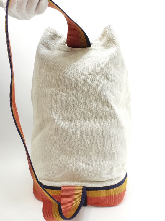 品名 : キャバリエ ボディバッグ大 斜め掛けショルダーバッグ クロスボディバッグ スリングバッグメーカー : エルメス 型番・素材 : コットンキャンバス ライン・色 : オフホワイト/オレンジ マットシルバー金具参考定価 : 未確認サイズ : W28 x H47.5 x D20 x L76 cm 製造番号 : 元から無し総重量 : 500g 本体重量 : 500g付属品 : 写真の中に写っているものです 情報 : ボディはシワ・薄汚れが少しございますが、目立つダメージはなく綺麗です。底部淵にスレはございません。ショルダーストラップは糸のつれが少しございますが、シミ・汚れ・弱りもなく状態は良いです。バッグ内はシミ・汚れもなく綺麗です。ファスナーの開閉はかためです。金具部分は元からくすんだ風合いのタイプでメッキ剥げはございません。 #Hermes #Cabalier #White #Orange #80%new #authentic #BodyBag #CrossbodyBag #Crossbody #Bag #ShoulderBag #matSilver #secondhand #wholeSale #haibanya #aisai-jp #転売可