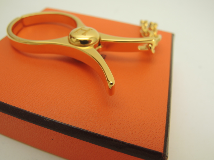 品名 : バッグチャーム キーリング グローブフォルダー メーカー : エルメス (HERMES) 型番・素材 : メッキ ライン・色 : フィルー シャインイエローゴールド(つるつるピカピカのタイプ) 参考定価 : 未確認 サイズ : W6 x H2.8 x D1 x L7 cm 製造番号 : 元からなし総重量 : 49g 本体重量 : 25g 付属品 : 写真の中に写っているものです 情報 : ・エルメスのハサミ型キーリングです。 ・全体がメタル素材にメッキで仕上げられております。 ・開閉はバネ式です。 ・キーホルダーやバッグチャームなどのアクセサリーとしてお使いいただけます。 状態コメント : 未使用展示品のお品になります。ボディは特記すべきスレ・小傷もなく綺麗です。チェーン部分も特記すべきダメージ・壊れはございません。メッキはげもなく全体的に綺麗です。 #Hermes #BagCharm #GloveHolder #Scissors #FILOU #Key #Shine #Gold #90%new #authentic #Kelly #Barkin #Charm #Accessories #secondhand #wholeSale #haibanya #aisai-jp #転売可