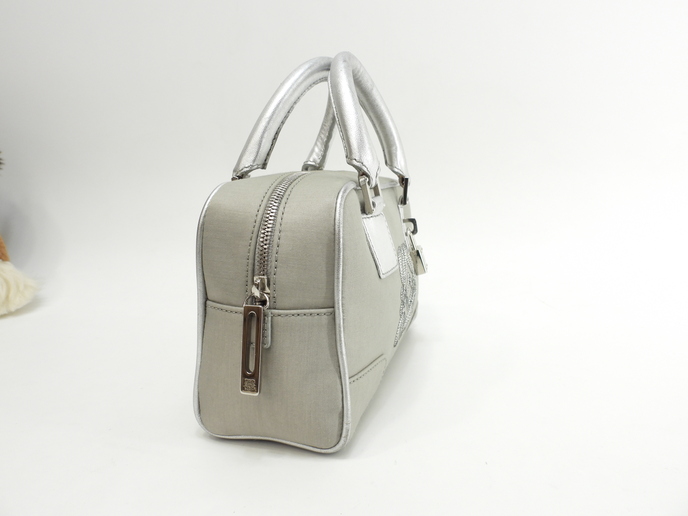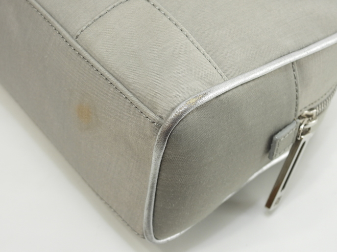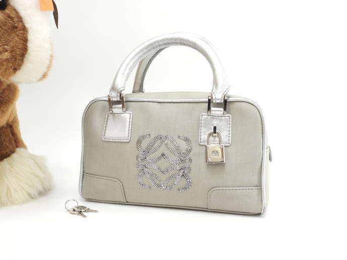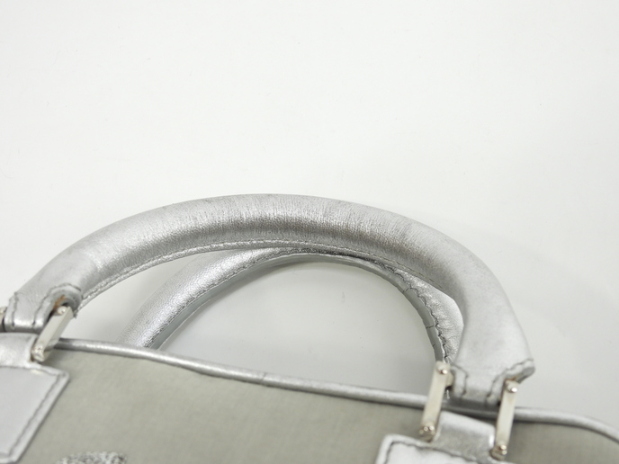 品名 : アマソナ20 ミニハンドバッグ メーカー : ロエベ (LOEWE) 型番・素材 : シルクサテン/カーフスキンレザー ライン・色 : メタルアナグラム シルバー シルバー金具 参考定価 : 不明 サイズ : W19.5 x H11.5 x D7 x G20 cm 製造番号 : 240501 総重量 : 230g 本体重量 : 220g 付属品 : 写真の中に写っているものです。 情報 : ボディはシミ・汚れ・弱りもなく綺麗です。底面にシミが1cmほどございます。カデナの痕はございません。角・バッグ淵にスレ・色剥げが少しございます。ハンドルは気になるスレ・汚れ・弱りもなく状態は良いです。バッグ内はシミ・汚れもなく綺麗です。ファスナーの開閉はかためです。金具部分は薄スレが少しございますが、メッキ剥げもなくピカピカです。 #Loewe #AMAZONA #Amazona20 #HandBag #Mini #ToteBag #Pochette #Bag #Silk #Calf #Leather #Silver #75%new #authentic #Anagram #Metal #secondhand #wholeSale #haibanya #aisai-jp #転売可