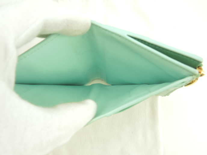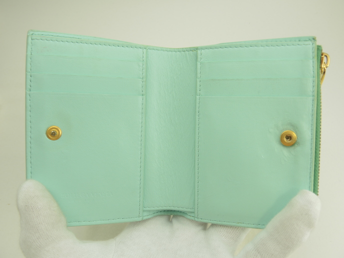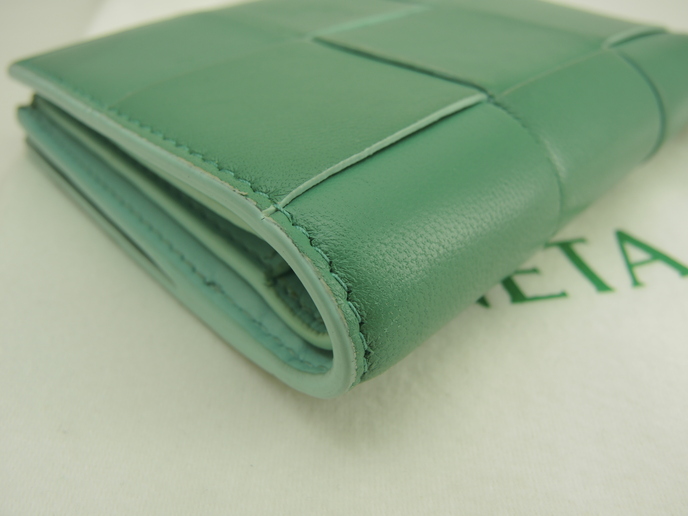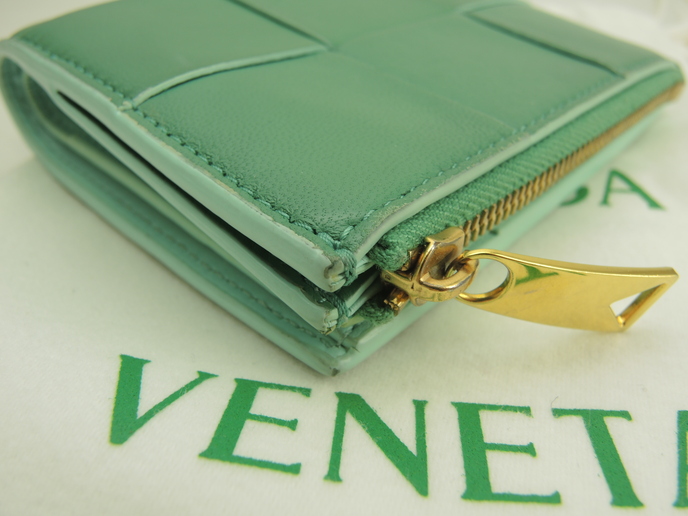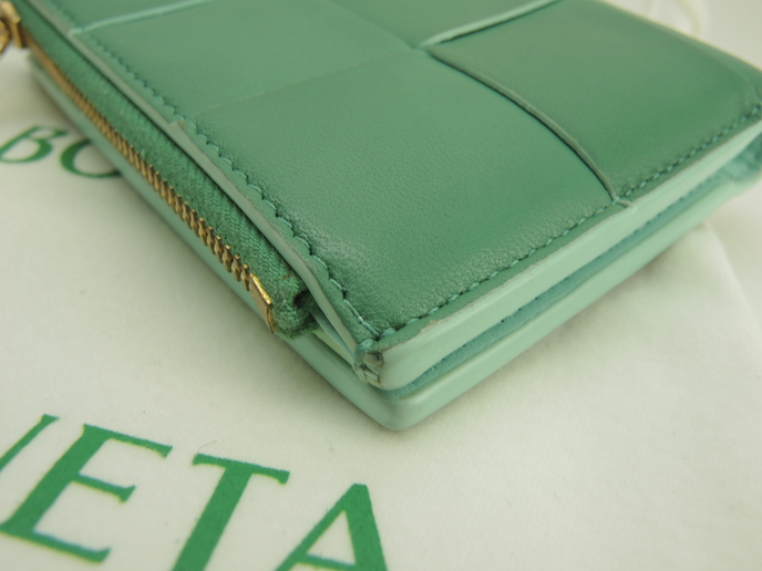品名 : 2つ折り財布 コンパクトウォレット スモールウォレット スモール二つ折りウォレット メーカー : ボッテガヴェネタ (BOTTEGA VENETA) 型番・素材 : 742698VCQC ラムスキンレザー ライン・色 : カセット グリーン ゴールド金具 参考定価 : 105600円 サイズ : W11.7 x H9.5 x D2.5 cm 製造番号 : R00100322Z 総重量 : 338g 本体重量 : 103g 付属品 : 写真の中に写っているものです 情報 : ボディは使用による薄スレ・薄シミ・薄汚れが少しございますが、酷いダメージはございません。角・湾曲部に薄スレ・薄汚れが少しございます。財布内は薄汚れ・しわが全体的にございますが目立つダメージはございません。札入れ内は薄汚れが全体的にございます。コインケース内は銭汚れが全体的にございます。ファスナーの開閉はかためです。ホックボタンは弱りもなくシッカリと閉まります。金具部分は薄スレ・小傷・メッキ剥げが少しございます。 #BOTTEGAVENETA #Bottega #Veneta #Small #CompactWallet #Wallet #Leather #Green #60%new #authentic #Cassette #SmallWallet #742698VCQC #R00100322Z #Gold #secondhand #wholeSale #haibanya #aisai-jp #転売可