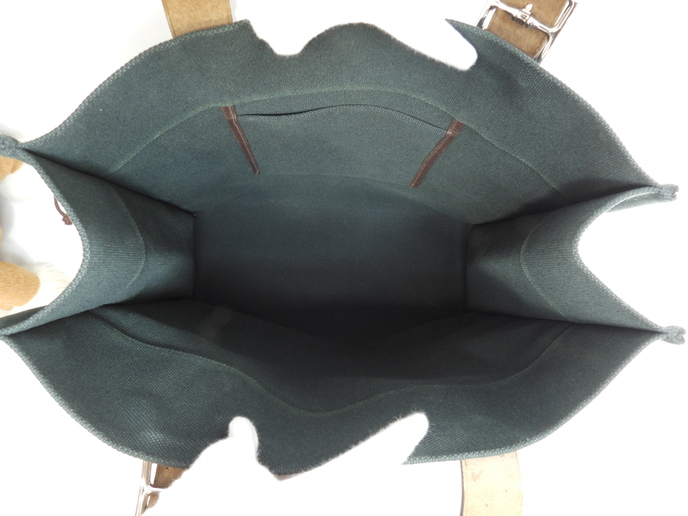 品名 : エトリヴィエール (Etriviere) トートバッグ ショルダーバッグ 縦長 メーカー : エルメス (HERMES) 型番・素材 : コットンデニムキャンバス カーフレザー ライン・色 : スティープル グリーン/ダークブラウン シルバー金具 参考定価 : 未確認 サイズ : W40 x H41 x D15 x G40-72 cm 製造番号 : □にQ総重量 : 1050g 本体重量 : 820g 付属品 : 写真の中に写っているものです 情報 :ボディは若干薄スレ・薄汚れがございますが、目立つダメージはなく綺麗です。底部角・バッグ淵に薄スレが少しございます。ショルダーストラップは薄スレ・薄汚れ・薄シミが全体的にございますが、弱りもなく状態は良いです。バッグ内はシミ・汚れもなく綺麗です。金具部分はピカピカです。 #Hermes #Etriviere #Cotton #Denim #Green #75%new #authentic #HandBag #ToteBag #Horse #Steple #Silver #secondhand #wholeSale #haibanya #aisai-jp #転売可
