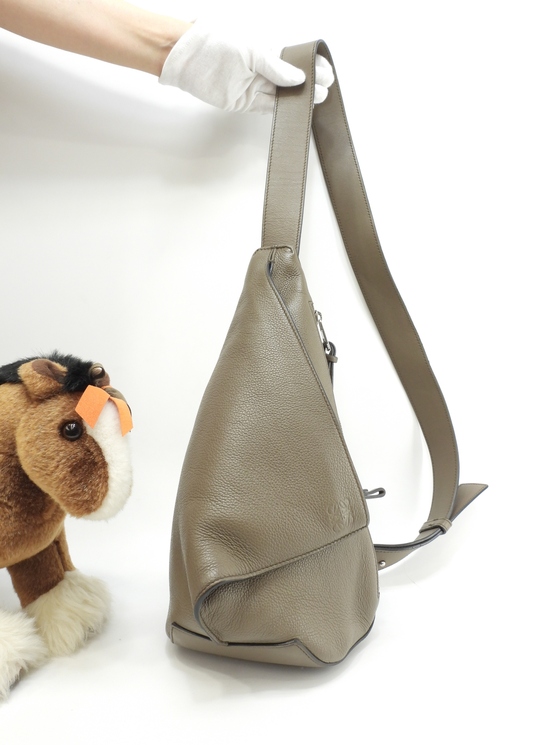 品名 : アントンスリング 斜め掛けショルダーバッグ クロスボディバッグ スリングバッグ メーカー : ロエベ (LOEWE) 型番・素材 : 型押しカーフレザー ライン・色 : アントン グレー シルバー金具 参考定価 : 不明 サイズ : W18 x H34 x D16 x L-122 cm 製造番号 : 052129 総重量 : 480g 本体重量 : 480g 付属品 : 写真の中に写っているものです 情報 : ボディはスレ・汚れもなく綺麗です。角・バッグ淵に薄スレ・薄汚れが全体的に少しございます。ショルダーストラップは淵の塗料部分にスレ・亀裂・削れがところどころございますが、スレ・汚れ・弱りもなく状態は良いです。バッグ内は薄汚れが全体的にあり、開口部にファスナーで擦れたスレ切れがございます。ファスナーの開閉はスムースです。金具部分は薄スレ・小傷・クスミが少しあり、ファスナーレーンにメッキ剥げが全体的にございます。 #Loewe #Anton #Sling #Bag #AntonSling #SlingBag #ShoulderBag #embossed #Leather #Gray #60%new #authentic #CrossbodyBag #Silver #secondhand #wholeSale #haibanya #aisai-jp #転売可