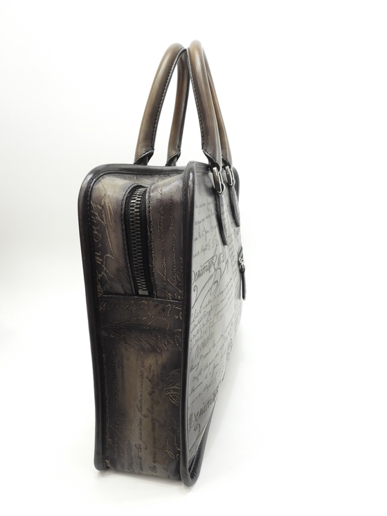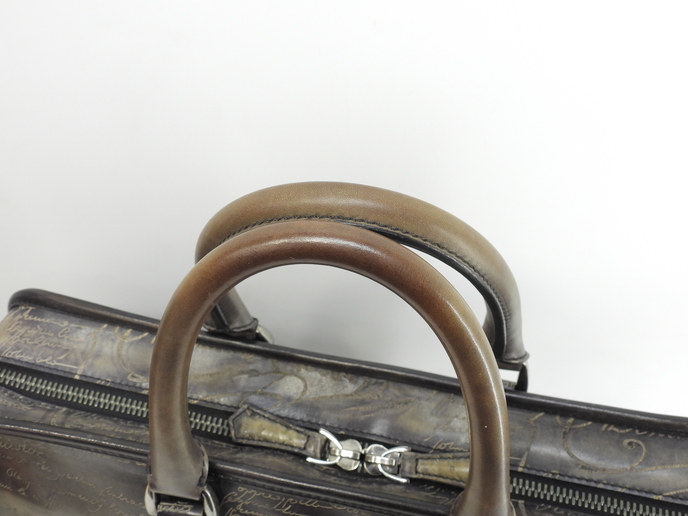品名 : アンジュール (UNJOURS) ビジネスバッグ ブリーフケース 書類かばん メーカー : ベルルッティ (Berluti) 型番・素材 : ヴェネツィアスクリットレザー ライン・色 : グレー ヴィンテージシルバー金具 参考定価 : 682000円 サイズ : W40.5 x H29 x D8 x G36 cm 製造番号 : 0133総重量 : 1120g 本体重量 : 1120g 付属品 : 写真の中に写っているものです 情報 : ボディは型崩れ・薄スレ・薄汚れが少しございますが、目立つダメージはなく綺麗なほうです。底部角・バッグ淵に薄スレが少しございます。ハンドは薄スレ・焦げ茶汚れが全体的にございますが、弱りはございません。バッグ内はレザー部分に薄スレが少しございますが、目立つダメージもなく綺麗です。ファスナーの開閉は少しかためです。金具部分は薄スレ・小傷が少しございますが、メッキ剥げもなく綺麗です。 #Berluti #UNJOURS #Un #Jours #BusinessBag #Leather #Gray #65%new #authentic #Document #Calligraphy #Briefcase #HandBag #Case #Silver #secondhand #wholeSale #haibanya #aisai-jp #転売可