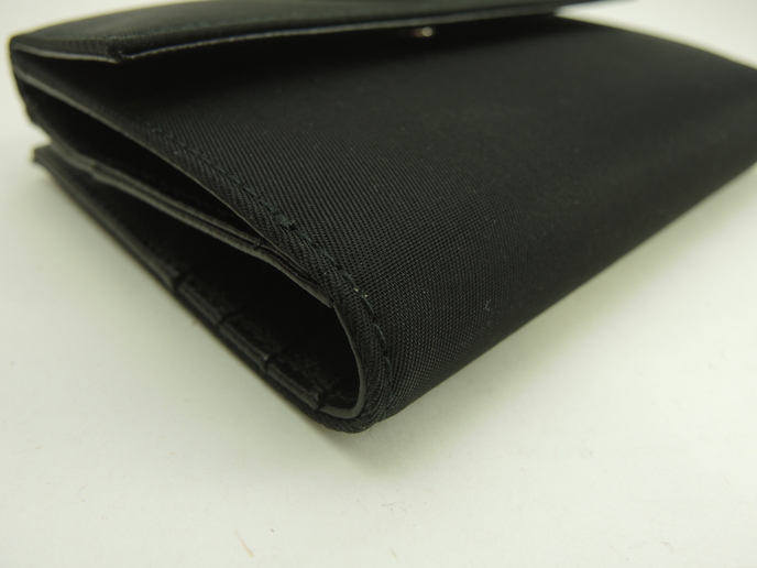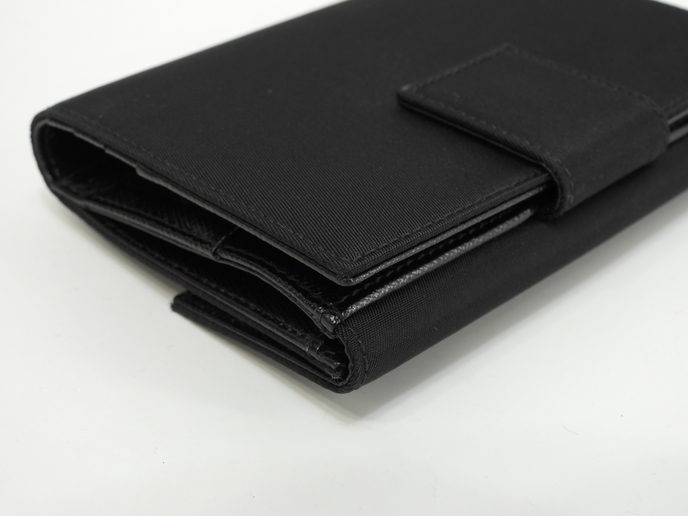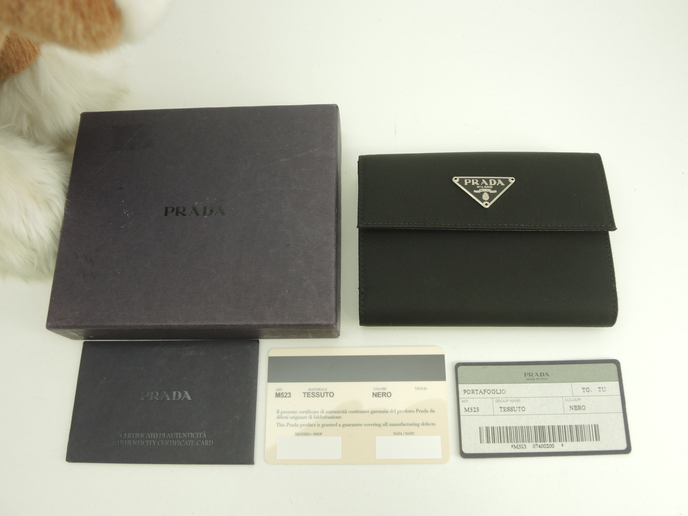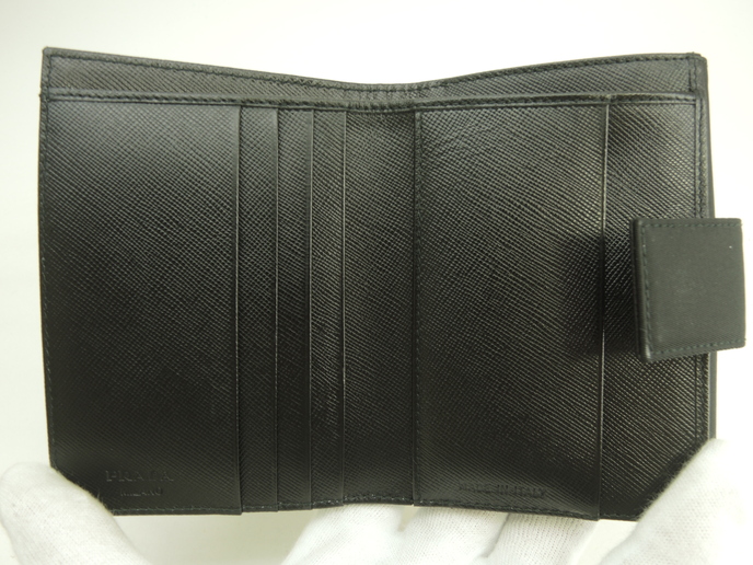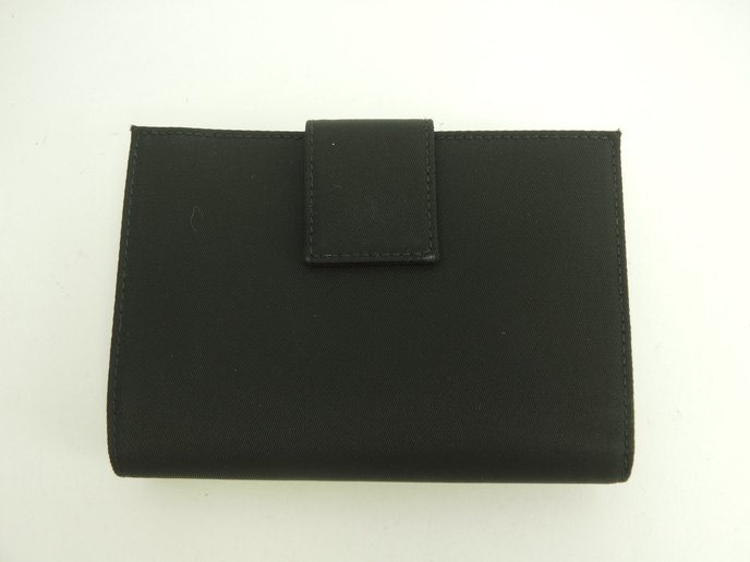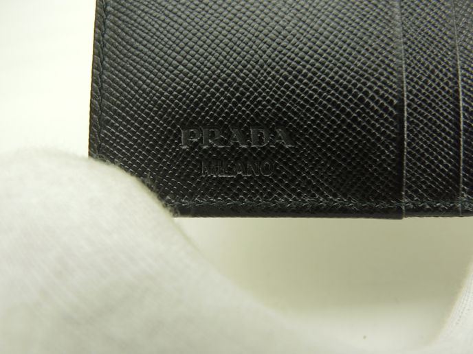 品名 : Wホック財布 コンパクトウォレット スモールウォレット メーカー : プラダ (PRADA) 型番・素材 : M523_074_002 テスート/サフィアーノレザーコンビ ライン・色 : 三角メタルロゴ ブラック マットシルバー金具 参考定価 : 不明 サイズ : W12 x H8.7 x D3 cm 製造番号 : 129総重量 : 156g 本体重量 : 78g 付属品 : 写真の中に写っているものです 情報 : 未使用保管のお品になります。若干ほこり・薄汚れがございます・金具部分は経年のクスミがございます。箱は色褪せていますのでおまけと思ってください。 #Prada #SmallWallet #PortoFoglio #Wallet #nylon #Tessuto #Leather #Saffiano #BK #90%new #authentic #BiHold #CompactWallet #TriAngle #M523 #Silver #secondhand #wholeSale #haibanya #aisai-jp #転売可