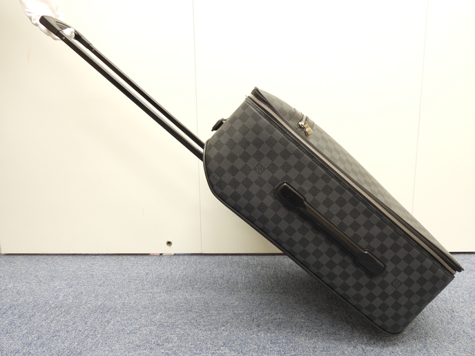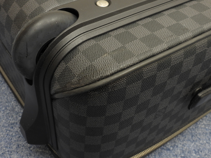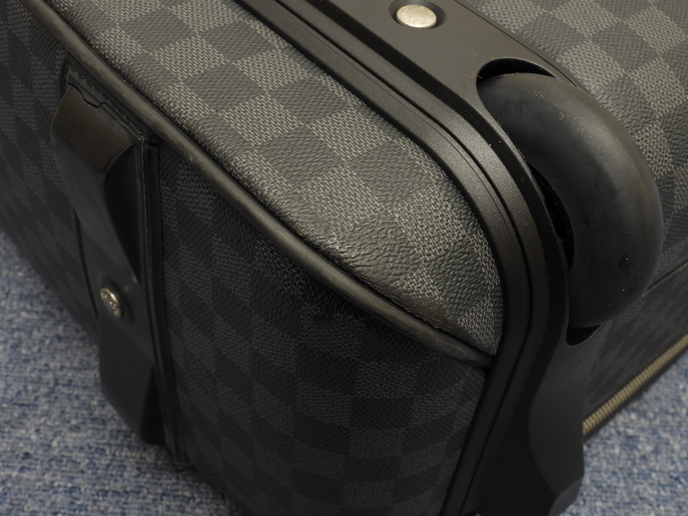 品名 : ペガス55 (Pegase 55) キャリーバッグ 旅行用スーツケース トロリーバッグ メーカー : ルイヴィトン (LOUIS VUITTON) 型番・素材 : N23299 PVC-カーフレザー ライン・色 : ダミエグラフィット シルバー金具 参考定価 : 437800円 サイズ : W39 x H55 x D18 x G20 x GL101 cm 製造番号 : SP1019 総重量 : 5770g 本体重量 : 4470g 付属品 : 写真の中に写っているものです 情報 : ボディは線スレ・薄スレがところどころございますが、酷いダメージはございません。底部角付近に擦れ・削れが少しございます。使用には問題ございませんが、蓋と本体の接合部のゴムに亀裂・剥がれが全体的にございます。グリップは薄スレ・薄汚れ・小傷が少しございますが、弱りはございません。収納可能なキャリーグリップは薄スレ・汚れが全体的に少しございますが、弱りもなく状態は良いです。ローラーは使用による薄スレ・薄汚れがございますが、亀裂・壊れはございません。バッグ内は色褪せが少しございますが、目立つダメージもなく綺麗です。ファスナーの開閉は少しかためです。金具部分は薄スレ・小傷・メッキ剥げが少しございます。 #LouisVuitton #Louis #Vuitton #TravelBag #DamierGraphite #Damier #Graphite #50%new #authentic #N23299 #Pegase55 #Pegase #CarryBag #Baggage #Luggage #Trolley #Carry-on #Bag #Silver #secondhand #wholeSale #haibanya #aisai-jp #転売可