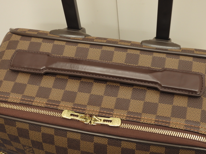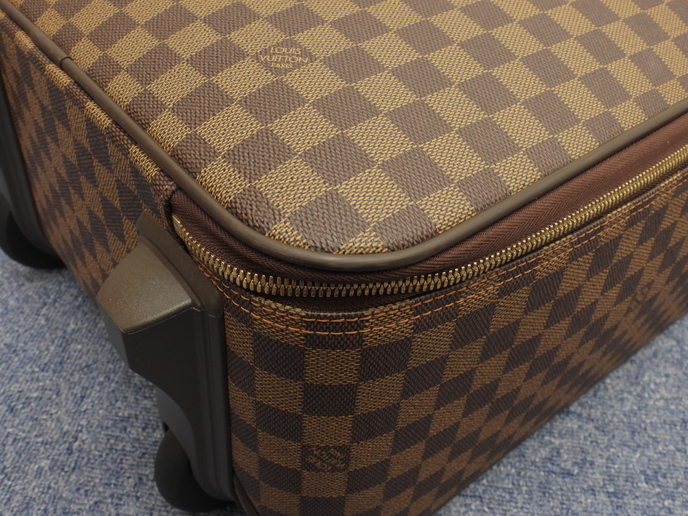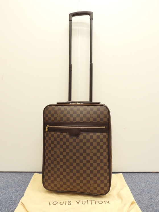 品名 : ペガス45 (Pegase 45) キャリーバッグ 旅行用スーツケース トロリーバッグ小 メーカー : ルイヴィトン (LOUIS VUITTON) 型番・素材 : N23293 PVC/カーフレザー ライン・色 : ダミエ エベヌ ゴールド金具 参考定価 : 約40万円 サイズ : W35 x H49 x D18.5 x G22 x GL106 cm 製造番号 : SP0016 総重量 : 3320g 本体重量 : 3060g 付属品 : 写真の中に写っているものです 情報 : ボディはスレ・汚れもなく綺麗です。底部角に薄スレが少しございます。ハンドルは薄スレ・シワが少しございますが、弱りもなく状態は良いです。収納可能なキャリーグリップは薄スレが少しございますが、弱りもなく状態は良いです。ローラーは直営店で新品に交換済みで綺麗です。バッグ内は薄汚れが少しございますが、目立つダメージはなく綺麗です。ファスナーの開閉はかためです。金具部分は金具同士が擦れる部分にスレ・メッキ剥げがございます。 #LouisVuitton #Louis #Vuitton #TravelBag #Damier #Ebene #80%new #authentic #N23293 #Pegase45 #Pegase #CarryBag #Baggage #Luggage #Trolley #Carry-on #Bag #Gold #secondhand #wholeSale #haibanya #aisai-jp #転売可
