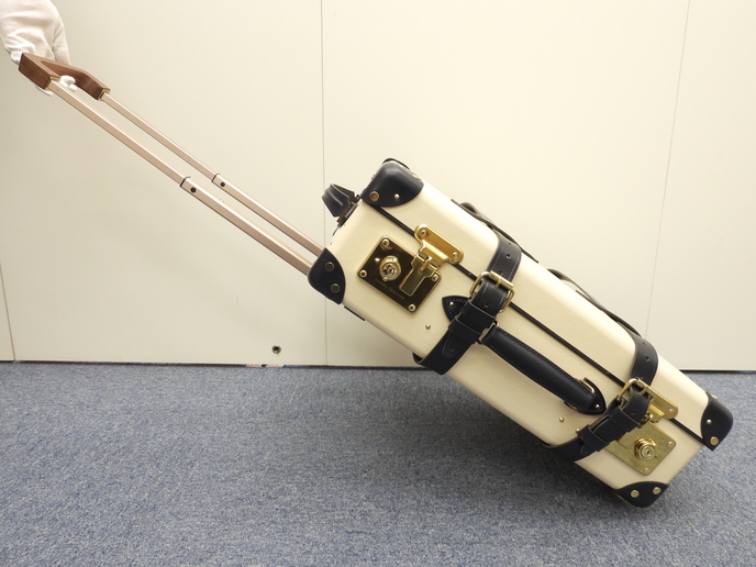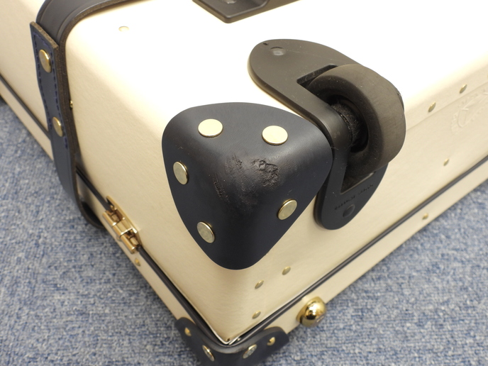 品名 : キャリーバッグ 旅行用スーツケース トロリーバッグ 旅行用トランク メーカー : グローブトロッター 型番・素材 : サファリキャリーオン ヴァルカンファイバー/カーフレザー ライン・色 : クリーム/ネイビー ゴールド金具 参考定価 : 374000円 サイズ : W40 x H55 x D20 x G18 x GL100 cm、 34 L 製造番号 : 元から無し総重量 : 4700g 本体重量 : 4260g 付属品 : 写真の中に写っているものです 情報 : ボディは使用による薄スレ・薄汚れが全体的にちょこちょこございますが、目立つダメージもなく綺麗です。底部角レザーに薄スレ・小傷・汚れが全体的にございますが、破れはございません。ハンドルは薄スレ・しわが少しございますが、弱りはございません。収納可能なキャリーグリップは薄スレが少しございますが、弱りはございません。ローラーは気になるスレ・汚れ・弱りはなく状態は良いです。ケース内はシワが全体的にございますが、汚れもなく綺麗です。金具部分はくすみが少しございますが、綺麗です。 #Globe-Trotter #Globe #Trotter #TravelBag #Safari #Cream #Navy #75%new #authentic #CarryBag #Baggage #Luggage #Trolley #Carry-on #Bag #Gold #secondhand #wholeSale #haibanya #aisai-jp #転売可
