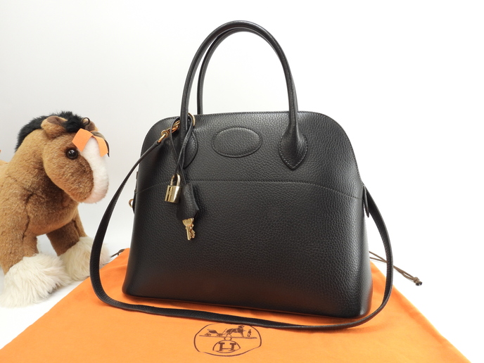 品名 : ボリード31 (Bolide 31) ショルダーストラップ付ハンドバッグ トートバッグ トップハンドルバッグ メーカー: エルメス (HERMES) 型番・素材: アルデンヌ(硬め型押しカーフレザー) ライン・色: ノワール(ブラック) ゴールド金具 参考定価 : 不明 サイズ : W31 x H24 x D12 x G30 x L92 cm 製造番号 : 〇Z刻総重量 : 910g 本体重量 : 790g 付属品 : 写真の中に写っているものです 情報 : ボディは若干薄スレがございますが、汚れ・目立つダメージはございません。底部角付近に薄スレ・薄汚れが少しございます。ハンドルは薄スレ・小傷・削れが少しございますが、弱りはございません。ショルダーストラップはスレ・汚れ・弱りもなく状態は良いです。バッグ内は柔らかいレザーですので薄スレが全体的にございますが、酷いダメージはございません。ファスナーの開閉はスムースです。金具部分は経年によるクスミ・薄スレ・メッキ剥げが全体的にございます。 #Hermes #Bolide31 #Bolide #Ardennes #Leather #Noir #BK #60%new #Zstamp #authentic #HandBag #Bag #TopHandleBag #ToteBag #strap #vintage #Gold #secondhand #wholeSale #haibanya #aisai-jp #転売可