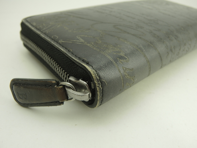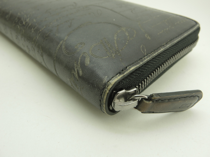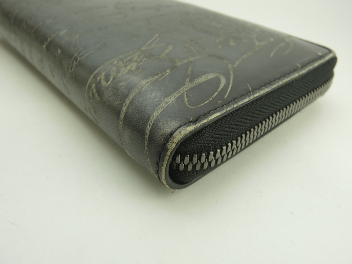 品名 : イタウバ (ITAUBA) ロングウォレット ジップアラウンドウォレット ラウンドジップ長財布 メーカー : ベルルッティ (Berluti) 型番・素材 : ヴェネチアスクリットカーフレザー ライン・色 : カリグラフィシリーズ ブラック グレー金具 参考定価 : 206800円 サイズ : W19.5 x H10.5 x D2.5 cm 製造番号 : E1117 総重量 : 224g 本体重量 : 224g 付属品 : 写真の中に写っているものです 情報 : ボディは使用による薄スレ・色褪せが全体的にございますが、酷いダメージはございません。湾曲部・財布淵に薄スレ・色剥げが全体的にございます。財布内は薄スレ・薄汚れが全体的に少しございます。小銭入れ内は銭汚れが少しございます。ファスナーの開閉はかためです。ファスナー引手レザーは薄スレ・色褪せが全体的にございますが、弱りはございません。金具部分はメッキ剥げもなく綺麗です。 #Berluti #LongWallet #Itauba #SCRITTO #Venezia #Leather #BK #65%new #authentic #Calligraphy #ZipAroundWallet #Wallet #Gray #secondhand #wholeSale #haibanya #aisai-jp #転売可