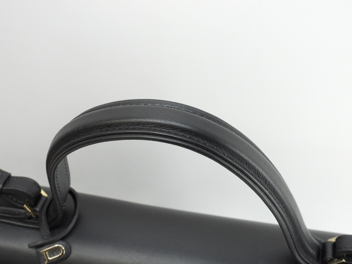 品名 : タンペートGM (Tempete GM) ショルダーストラップ付きハンドバッグ トップハンドルバッグ ケリー型 ショルダーバッグ メーカー : デルヴォー (DELVAUX) 型番・素材 : シルキーカーフレザー ライン・色 : ブラック ゴールド金具 参考定価 : 約110万円 サイズ : W29-32 x H24.5 x D12 x G29 x L98 cm 製造番号 : BO4D総重量 : 1040g 本体重量 : 1010g 付属品 : 写真の中に写っているものです 情報 : ボディは使用による薄スレ・小傷が少しございますが、目立つダメージはなく綺麗です。底部角にスレはございません。ハンドルはスレ・汚れ・弱りもなく状態は良いです。ショルダーストラップはスレ・汚れ・弱りもなく状態は良いです。バッグ内はペン痕汚れ・薄汚れが全体的にけっこうあり使用感がございます。正面金具は薄スレ・小傷・メッキ剥げが全体的にございます。 #Delvaux #TempeteGM #Tempete #GM #SilkyCalf #Leather #BK #80%new #authentic #HandBag #Kelly #ShoulderBag TopHandleBag #Bag #Gold #secondhand #wholeSale #haibanya #aisai-jp #転売可
