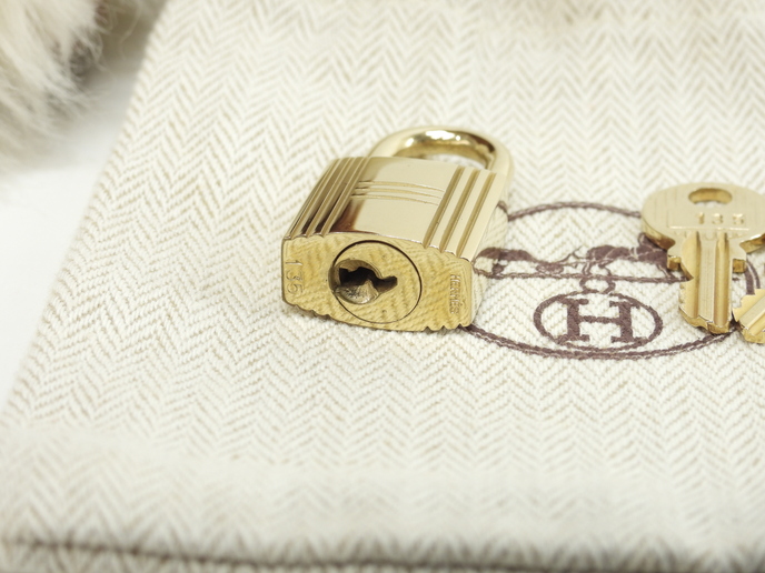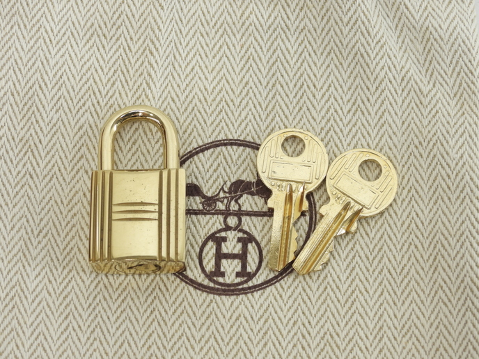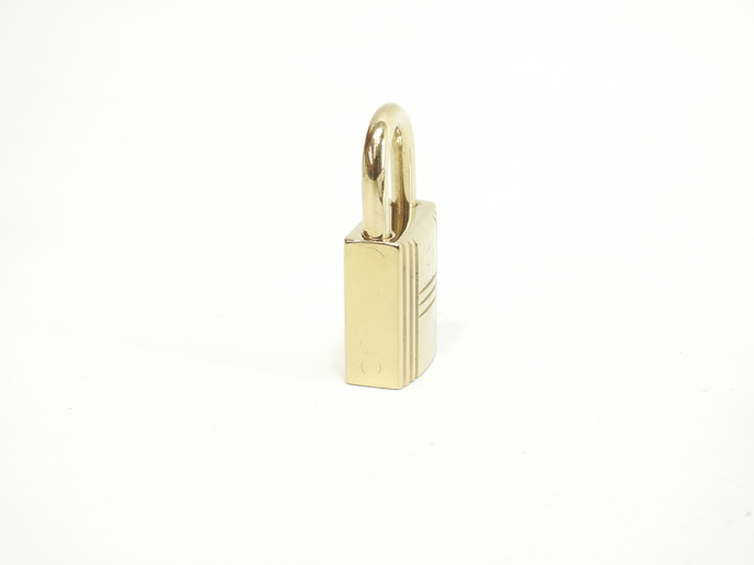 品名 : 南京錠 パドロック バッグチャーム メーカー : エルメス (HERMES) 型番・素材 : メッキ ライン・色 : シャインゴールド 参考定価 : 未確認 サイズ : W2 x H3.5 x D1 cm 製造番号 : 元からなし 総重量 : 52g 本体重量 : 36g 付属品 : 写真の中に写っているものです 情報 : ・エルメスの南京錠です。 ・全体がメタル素材にメッキで仕上げられております。 ・キー式で開閉可能です。 ・南京錠としての役割はもちろん、ペンダントトップなどのアクセサリー・バッグチャームとしてもお使いいただけると思います。バーキンやケリー、ボリードの付属品としてもお使いいただけます。 状態コメント : ボディは薄スレ・小傷が全体的に少しございますが、目立つダメージはなく綺麗です。メッキ剥げははなくピカピカしております。開閉はスムースです。 #Hermes #Padlock #Key #Gold #70%new #authentic #PendantTop #Kelly #Barkin 135 #secondhand #wholeSale #haibanya #aisai-jp #転売可