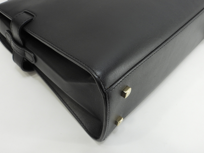 品名 : タンペートMM (Tempete MM) ショルダーストラップ付きハンドバッグ トップハンドルバッグ ケリー型 ショルダーバッグ メーカー : デルヴォー (DELVAUX) 型番・素材 : シルキーカーフレザー ライン・色 : ブラック ゴールド金具 参考定価 : 1048300円 サイズ : W24.5-27.5 x H21 x D10 x G26 x L106 cm 製造番号 : HO4D総重量 : 790g 本体重量 : 780g 付属品 : 写真の中に写っているものです 情報 : ボディは使用による薄スレ・押し痕・しわがところどころ少しございますが、目立つダメージはなく綺麗です。底部角にスレはございません。ハンドルはスレ・汚れ・弱りもなく状態は良いです。ショルダーストラップはスレ・汚れ・弱りもなく状態は良いです。バッグ内は薄シミ・薄汚れが少しございますが、目立つダメージはございません。正面金具は薄スレが少しございますが、メッキ剝げもなくピカピカです。 #Delvaux #TempeteMM #Tempete #MM #SilkyCalf #Leather #BK #80%new #authentic #HandBag #Kelly #ShoulderBag TopHandleBag #Bag #Gold #secondhand #wholeSale #haibanya #aisai-jp #転売可