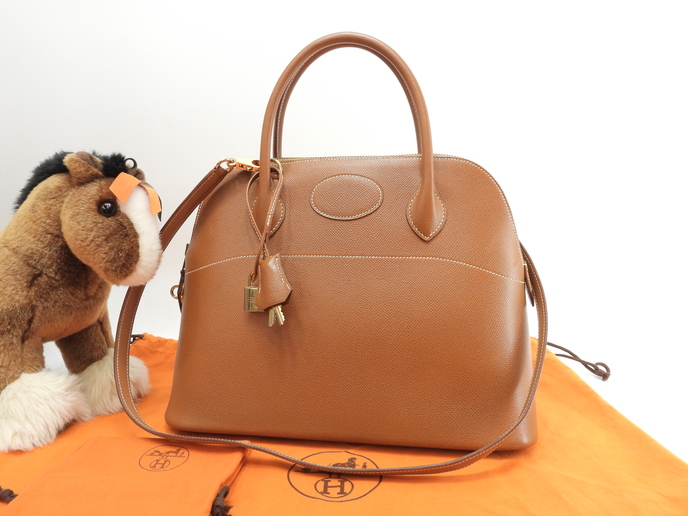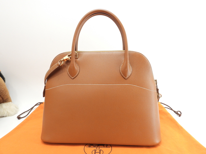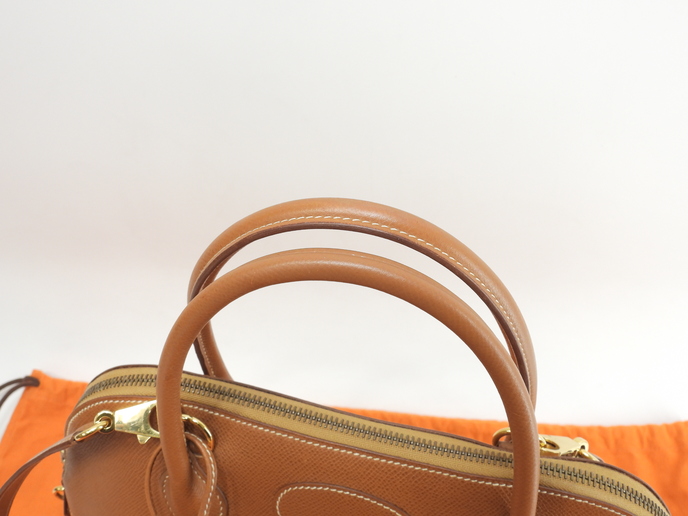 品名 : ボリード31 (Bolide 31) ショルダーストラップ付ハンドバッグ トートバッグ トップハンドルバッグ ショルダーバッグ メーカー: エルメス (HERMES) 型番・素材: クシュベルレザー ライン・色: ゴールド(ブラウン) ゴールド金具 参考定価 : 不明 サイズ : W31 x H24 x D12 x G30 x L90 cm 製造番号 : 〇Y刻総重量 : 910g 本体重量 : 740g 付属品 : 写真の中に写っているものです 情報 : ボディは薄スレ・薄汚れ・薄シミがところどころ少しございますが、目立つダメージはございません。底部四隅角付近に薄スレ・薄汚れが全体的にございます。ハンドルは薄スレ・薄汚れが少しございますが、弱りもなく状態は良いです。ショルダーストラップは若干薄スレがございますが、汚れ・弱りもなく状態は良いです。バッグ内は柔らかいレザーですので薄スレが全体的にあり、ペン痕汚れもございます。ファスナーの開閉はスムースです。ファスナー金具部分は経年のクスミ・薄スレが全体的にあり、メッキ剥げも少しございます。 #Hermes #Bolide31 #Bolide #Couchevel #Leather #Gold #Brown #70%new #Ystamp #authentic #HandBag #Bag #TopHandleBag #ToteBag #strap #GoldGP #secondhand #wholeSale #haibanya #aisai-jp #転売可