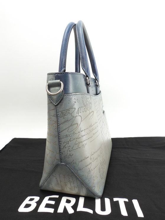 品名 : トゥジュールXS (TOUJOURS XS) トートバッグ ハンドバッグ 斜め掛けショルダーバッグ クロスボディバッグ ポシェット メーカー : ベルルッティ (Berluti) 型番・素材 : TOUJOURS_XS ヴェネチアスクリットカーフレザー ライン・色 : カリグラフィシリーズ グレー/ブルー シルバー金具 参考定価 : 470800円 サイズ : W32 x H22.5 x D12 x G32 x L96-120 cm 製造番号 : U0224 総重量 : 930g 本体重量 : 700g 付属品 : 写真の中に写っているものです 情報 : ボディは使用による薄スレが全体的にございますが、目立つダメージはなく綺麗なほうです。底部角に気になるスレはございません。ハンドルは薄スレ・薄汚れが少しございますが、弱りもなく状態は良いです。ショルダーストラップは未使用で綺麗です。バッグ内は特記すべきダメージもなく綺麗です。金具部分は小傷・クスミが少しございますが、メッキ剝げもなく綺麗です。 #Berluti #ToteBag #XS #Leather #Gray #Blue #65%new #authentic #Calligraphy #TOUJOURS #TOUJOURSxs #HandBag #ShoulderBag #CrossBodyBag #Pochette #Silver #secondhand #wholeSale #haibanya #aisai-jp #転売可