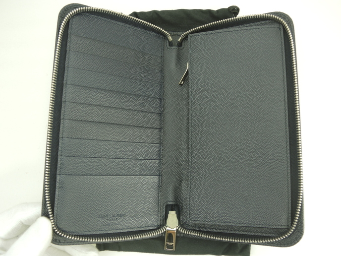 品名 : ロングウォレット ラウンドジップ長財布 ジップアラウンドウォレット メーカー : サンローランパリス (Saint Laurent Paris) 型番・素材 : 328558 型押しカーフレザー ライン・色 : YSL ナイビー シルバー金具 参考定価 : 不明 サイズ : W21 x H11.5 x D2.5 cm 製造番号 : INN328558-0318総重量 : 382g 本体重量 : 237g 付属品 : 写真の中に写っているものです 情報 : ボディは若干薄スレがございますが、目立つダメージもなく綺麗です。角・湾曲部に気になるスレはございません。財布内はスレ・汚れもなく綺麗です。コインケース内は銭汚れもなく綺麗です。ファスナーの開閉はスムースです。金具部分はファスナースライサーにクスミございますが、全体的に綺麗です。 #SaintLaurent #Saint #Laurent #LongWallet #Wallet #Embossed #Lether #Navy #80%new #authentic #YSL #328558 #ZipAroundWallet #Silver #secondhand #wholeSale #haibanya #aisai-jp #転売可