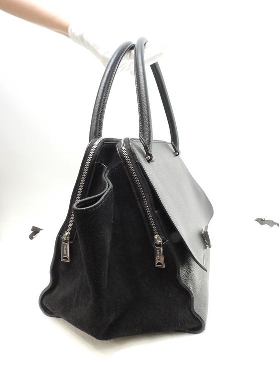 品名 : トラペーズトートバッグ ハンドバッグ ショルダーバッグ トートバッグ メーカー : セリーヌ (CELINE) 型番・素材 : 型押しカーフレザー/スウェードレザー ライン・色 : ブラック マットシルバー金具 参考定価 : 不明 サイズ : W32-54 x H25 x D21 x G44 cm 製造番号 : S-CU-1122 総重量 : 1750g 本体重量 : 1530g 付属品 : 写真の中に写っているものです 情報 : ボディは型崩れ・薄スレが少しございますが、目立つダメージもなく綺麗です。スウェード部分は薄汚れ・薄シミが少しございます。底部角にスレはございません。ハンドルはスレ・汚れ・弱りもなく状態は良いです。バッグ内は薄スレ・薄汚れが少しございますが、目立つダメージもなく綺麗です。金具部分は薄スレ・小傷が少しございますが、メッキ剥げもなくピカピカです。 #Celine #Trapeze #Medium #ShoulderBag #ToteBag #Suede #Leather #BK #80%new #authentic #HandBag #Silver #secondhand #wholeSale #haibanya #aisai-jp #転売可