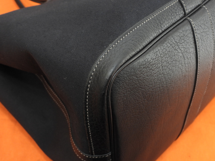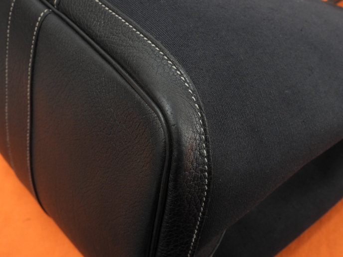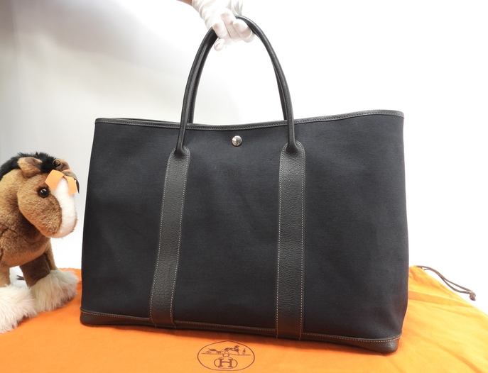 品名 : ガーデンパーティ43 ガーデンパーティーMM トートバッグ大 ハンドバッグ大 トップハンドルバッグ メーカー : エルメス (HERMES) 型番・素材 : コットンキャンバス/ブッフルスキッパーレザー ライン・色 : ブラック シルバー金具 参考定価 : 未確認 サイズ : W43 x H30.5 x D20 x G40 cm 製造番号 : □H刻 総重量 : 850g 本体重量 : 630g 付属品 : 写真の中に写っているものです 情報 : ボディは使用による薄スレ・薄汚れが全体的に少しございますが、酷いダメージはなく綺麗なほうです。底部四隅角に薄スレ・薄汚れが全体的に少しございます。ハンドルは気になるスレ・汚れ・弱りもなく状態は良いです。バッグ内は薄汚れが少しございますが、目立つダメージもなく綺麗です。ホックボタンは弱りもなくシッカリと閉まります。金具部分は経年のクスミがございますが、スレ・メッキ剥げはございません。 #Hermes #GardenParty #Garden #Party #MM #GardenParty43 #Cotton #Buffle #Leather #BK #70%new #authentic #HandBag #ToteBag #ShoppingBag #Bag #Silver #secondhand #wholeSale #haibanya #aisai-jp #転売可