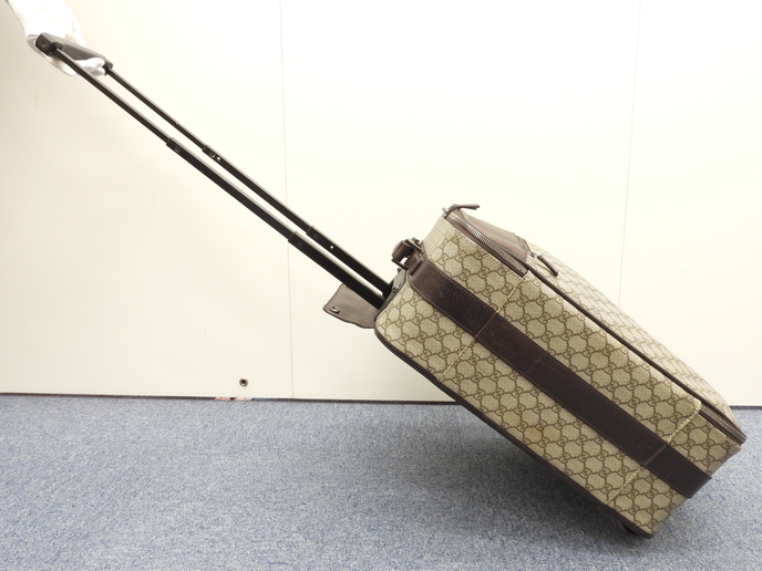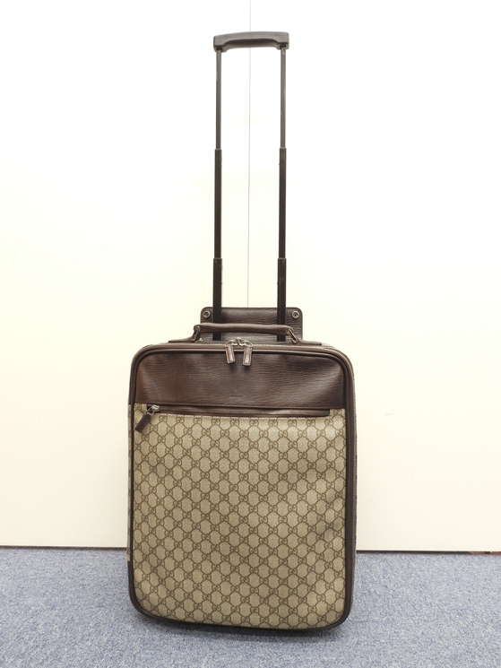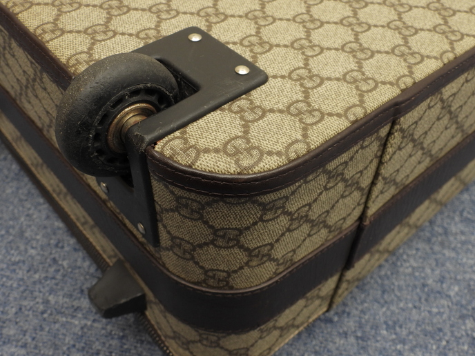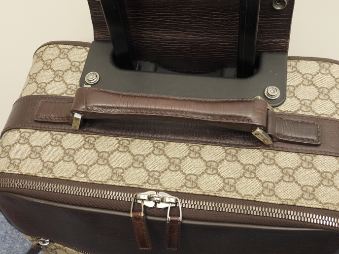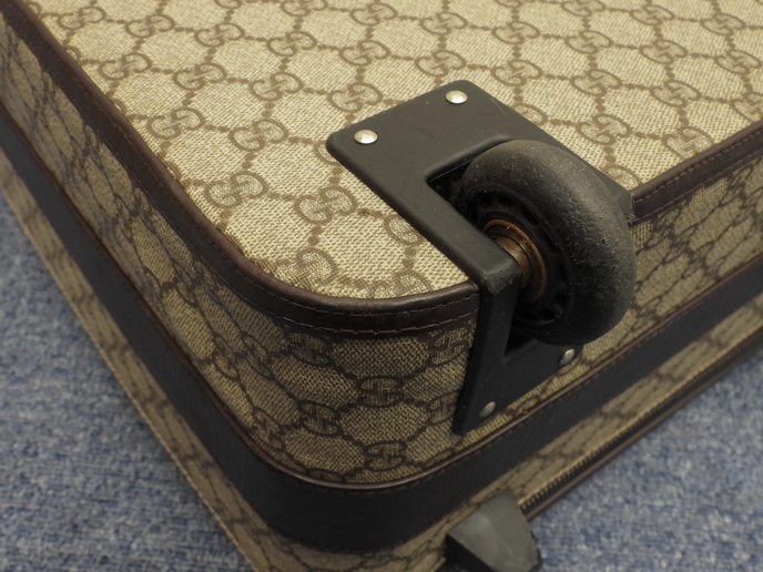 品名 : 2輪キャリーバッグ 二輪スーツケース キャリーオンスーツケース トロリーバッグ メーカー : グッチ (GUCCI) 型番・素材 : 118881 PVC-カーフレザー ライン・色 : オールドグッチ グレー/ダークブラウン ダークシルバー金具 参考定価 : 不明 サイズ : W36 x H45 x D18 x G20 x L106 cm 製造番号 : 118881-2123総重量 : 3400g 本体重量 : 3400g 付属品 : 写真の中に写っているものです 情報 : ボディは気になるようなダメージもなく綺麗です。底部角付近・バッグ淵にスレはほとんどございません。グリップは薄スレが少しございますが、弱りもなく状態は良いです。収納可能なキャリーグリップは薄スレ・汚れが少しございますが、弱りもなく状態は良いです(蓋レザーのホックボタンがかたくて閉まらないです)。バッグ内は色褪せ・薄汚れが少しございますが、酷いダメージはございません。ファスナーの開閉はすこしかためです。金具部分は薄スレ・小傷・クスミが少しございます。 #Gucci #Carry-On #Carryon #Small #Carry-OnBag #GG #PVC #Leather #Gray #Brown #70%new #authentic #Supreme #TravelBag #TravelCase #Bag #118881 #Luggage #Trolley #Silver #secondhand #wholeSale #haibanya #aisai-jp #転売可