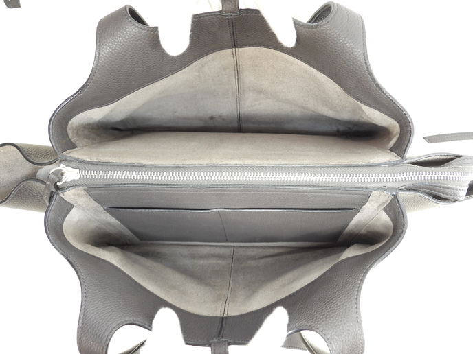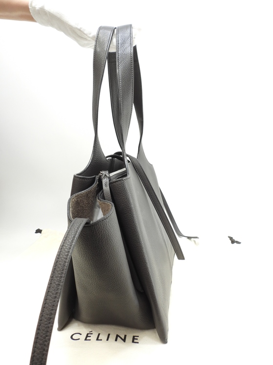 品名 : ハンドバッグ トートバッグ ショルダーバッグ メーカー : セリーヌ (CELINE) 型番・素材 : 179043AIK グレインドカーフスキンレザー ライン・色 : ダークグレー マットシルバー金具 参考定価 : 約38万円 サイズ : W31-48 x H22.5 x D13 x G48 cm 製造番号 : S-LA-3196 総重量 : 1210g 本体重量 : 1040g 付属品 : 写真の中に写っているものです 情報 : ボディは薄スレ・薄汚れ・色むらがところどころございますが、目立つダメージはございません。底部角付近に薄スレ・薄汚れが少しございます。ハンドルはしわ・薄汚れが少しございますが、弱りもなく状態は良いです。バッグ内は薄シミ・薄汚れがところどころ少しございますが、酷いダメージはございません。金具部分はピカピカです。トリフォールド トライフォルド トライフォールド #Celine #Tri #Fold #TriFold #Leather #carfLeather #carf #Gray #70%new #authentic #HandBag #ToteBag #Silver #scondhand #wholeSale #haibanya #aisai-jp #転売可