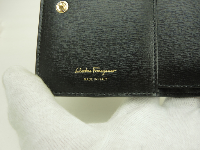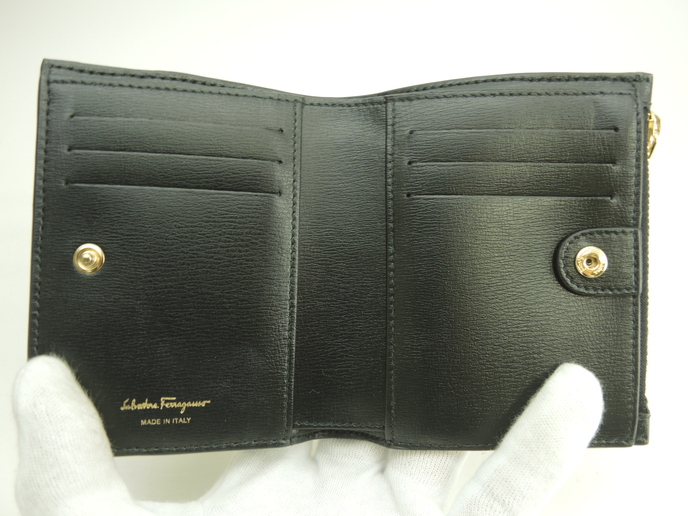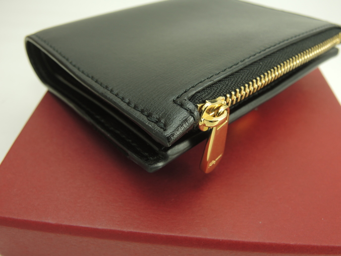 品名 : 2つ折り財布 コンパクトウォレット スモールウォレット メーカー : サルヴァトーレ フェラガモ (Salvatore Ferragamo) 型番・素材 : 22E009 734500 カーフレザー ライン・色 : ヴァラ ブラック ゴールド金具 参考定価 : 71500円 サイズ : W10.7 x H9.5 x D2.5 cm 製造番号 : JP22E009 総重量 : 217g 本体重量 : 120g 付属品 : 写真の中に写っているものです 情報 : ボディはスレ・汚れもなく綺麗です。角・湾曲部にスレはございません。財布内は気になるダメージもなく綺麗です。札入れ内はシミ・汚れもなく綺麗です。コインケース内は銭汚れもなく綺麗です。ファスナーの開閉はスムースです。正面金具は薄スレが少しございますが、メッキ剥げもなくピカピカです。 #Salvatore #Ferragamo #CompactWallet #SmallWallet #Calf #Leather #BK #85%new #authentic #Vara #Bi-fold #JP22E009 #Gold #secondhand #wholeSale #haibanya #aisai-jp #転売可