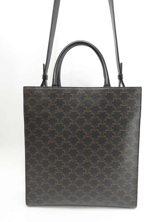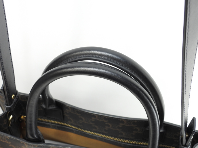 品名 : ショルダーストラップ付ハンドバッグ ポシェット 斜め掛けショルダーバッグ クロスボディバッグ ミディアムバーティカルカバ トートバッグ メーカー : セリーヌ (CELINE) 型番・素材 : PVC-カーフレザー ライン・色 : トリオンフ柄 ブラック-ブラック シャインゴールド金具 参考定価 : 不明 サイズ : W31.5 x H34.5 x D8.5 x G31 x L110-112 cm 製造番号 : F-SL-3200 総重量 : 880g 本体重量 : 880g 付属品 : 写真の中に写っているものです 情報 : ボディはスレ・汚れもなく綺麗です。底部角にスレはございません。ハンドルはスレ・汚れ・弱りもなく状態は良いです。ショルダーストラップはスレ・汚れ・弱りもなく状態は良いです。バッグ内は若干薄汚れがございますが、目立つダメージもなく綺麗です。金具部分はメッキ剥げもなくピカピカです。 #Celine #HandBag #Strap #Medium #Vertical #Caba #VerticalCaba #TRIOMPHE #PVC #Leather #BK #Black #80%new #authentic #Crossbody #Bag #Pochette #ShoulderBag #Gold #secondhand #wholeSale #haibanya #aisai-jp #転売可