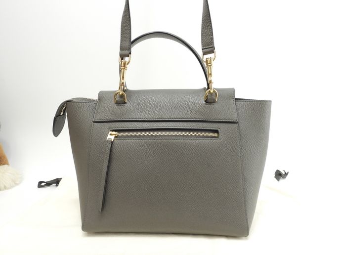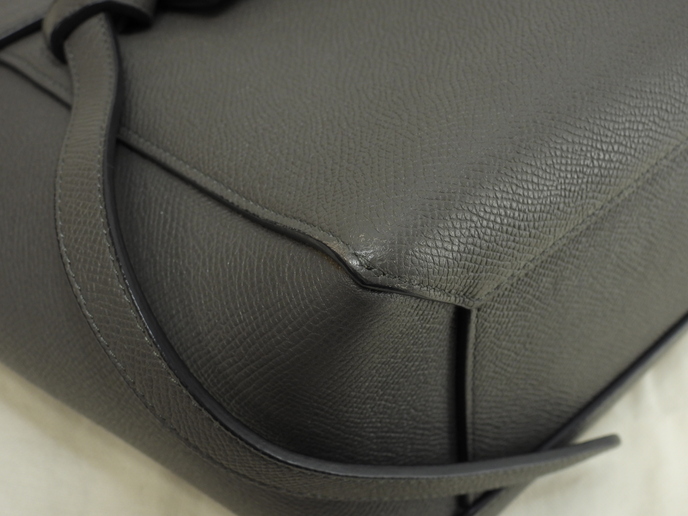 品名 : ベルトバッグマイクロ (Micro Belt Bag) ショルダーストラップ付ハンドバッグ クロスボディバッグ ポシェット メーカー : セリーヌ(Celine) 型番・素材 : 189153ZVA.10DC グレインドカーフスキンレザー(ヴォーエプソン) ライン・色 : グレー ヴィンテージゴールド金具 参考定価 : 390500円 サイズ : W24-33.5 x H21 x D13.5 x G24 x L114 cm 製造番号 : S-MP-0147 総重量 : 1000g 本体重量 : 870g 付属品 : 写真の中に写っているものです 情報 : ボディは若干薄スレ・押し痕・型崩れがございますが、汚れもなく綺麗です。底部角に薄スレ・薄汚れが少しございます。ハンドルはスレ・汚れ・弱りもなく状態は良いです。ショルダーストラップはシワが少しございますが、スレ・汚れ・弱りもなく状態は良いです。バッグ内は薄シミ・薄汚れが少しございますが、酷いダメージはございません。ファスナーの開閉はスムースです。金具部分は特記すべきメッキ剥げもなく全体的に綺麗です。 #Celine #HandBag #CrossbodyBag #Bag #Gray #GrainedCalfskinLeather #Grained #Calf #Leather #75%new #authentic #BeltBagMicro #Micro #BeltBag #Pochette #189153ZVA #Gold #secondhand #wholeSale #haibanya #aisai-jp #転売可