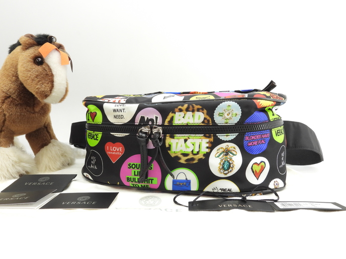 品名 : ボディバッグ ベルトバッグ クロスボディバッグ 斜め掛けショルダーバッグ ヒップバッグ ウエストバッグ バムバッグ メーカー : ヴェルサーチ (VERSACE) 型番・素材 : DFB7692 DNY08 KMXP ナイロンファブリック ライン・色 : スタンプ ブラック シルバー金具 参考定価 : 不明 サイズ : W35 x H16 x D18 x G-164 cm 製造番号 : 118861総重量 : 400g 本体重量 : 300g 付属品 : 写真の中に写っているものです 情報 : ボディはシミ・汚れもなく綺麗です。底部角・バッグ淵にスレはございません。ベルト部分は薄汚れが少しございますが、弱りもなく状態は良いです。バッグ内は若干薄汚れがある程度で綺麗です。ファスナーの開閉はスムースです。金具部分はメッキ剥げもなくピカピカです。 #VERSACE #BodyBag #Nylon #BK #90%new #authentic #Bag #BeltBag #HipBag #WeistBag #CrossbodyBag #BumBag "Stamp #DFB7692 #Sivler #secondhand #wholeSale #haibanya #aisai-jp #転売可