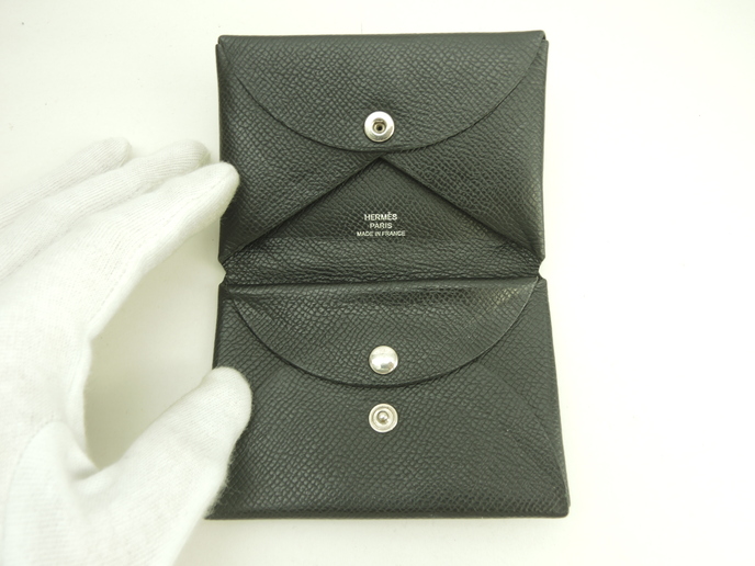 品名 : コンパクトウォレット スモールウォレット ミニウォレット カルヴィデュオ カードケース コインケース メーカー : エルメス (HERMES) 型番・素材 : ヴォーエプソンレザー ライン・色 : ノワール シルバー金具 参考定価 : 不明 サイズ : W10.5 x H7.3 x D2 cm 製造番号 : Z刻 総重量 : 46g 本体重量 : 46g 付属品 : 写真の中に写っているものです 情報 : ボディは型崩れ・薄スレ・薄汚れが全体的にあり使用感がけっこうございます。角・湾曲部に薄スレが少しございます。財布内は型崩れ・しわがあり、薄スレ・薄汚れが少しございます。コインケース内は銭汚れが全体的にございます。ホックボタンは弱りもなくシッカリと閉まります。金具部分は薄スレ・クスミが全体的にございますが、メッキ剥げはございません。 #Hermes #Calvi #Duo #CalviDuo #Wallet #Epson #BK #Noir #40%new #authentic #CompactWallet #SmallWallet #MiniWallet #CoinCase #CardCase #Silver #secondhand #wholeSale #haibanya #aisai-jp #転売可