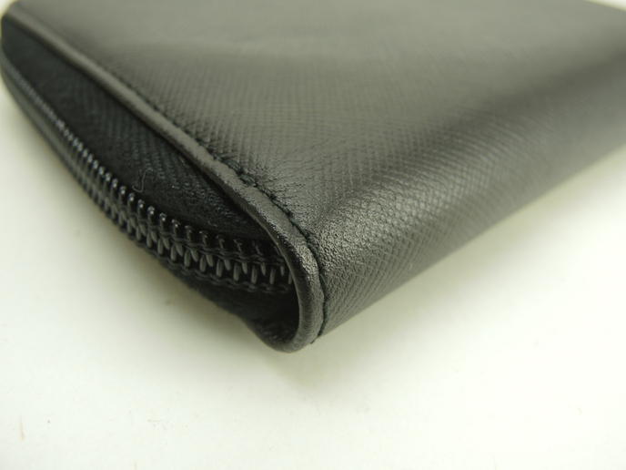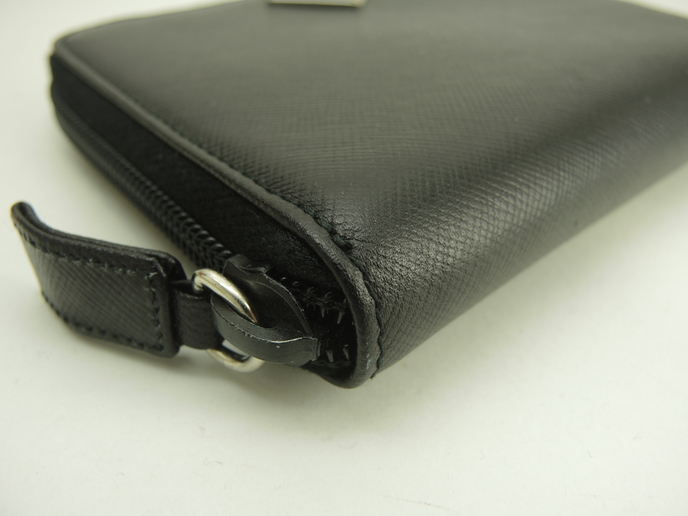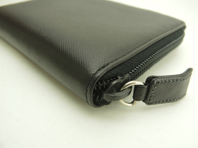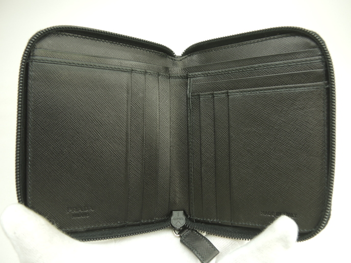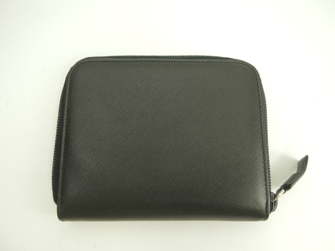 品名 : 2つ折りラウンドジップ札入れ カードケース カードホルダー コンパクト札入れ メーカー : プラダ (PRADA) 型番・素材 : サフィアーノレザー ライン・色 : トライアングルロゴ ブラック(ノワール) シルバー金具 参考定価 : 不明 サイズ : W13 x H10.8 x D2 cm 製造番号 : 64総重量 : 219g 本体重量 : 118g 付属品 : 写真の中に写っているものです 情報 : ボディはスレ・汚れもなく綺麗です。角・湾曲部に気になるスレはございません。ケース内はスレ・汚れもなく綺麗です。札入れ内はシミ・汚れもなく綺麗です。ファスナーの開閉はスムースです。ファスナーの引手革は曲がり癖がございますが、スレ・汚れ・弱りはございません。金具部分はメッキ剥げもなく綺麗です。 #Prada #CompactBillfold #Billfold #RoundZippert #ZipAround#Leather #BK #Nero #90%new #authentic #Saffiano #Triangle #Logo #SIlver #secondhand #wholeSale #haibanya #aisai-jp #転売可